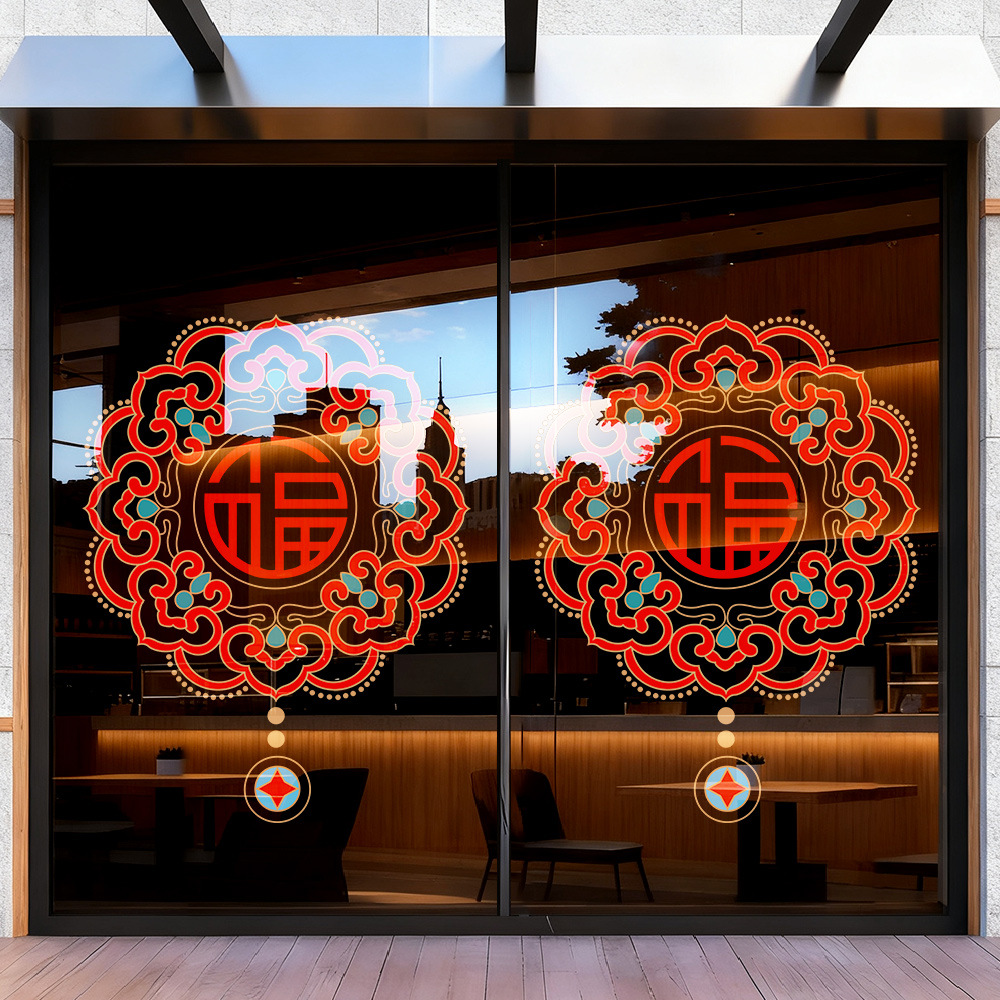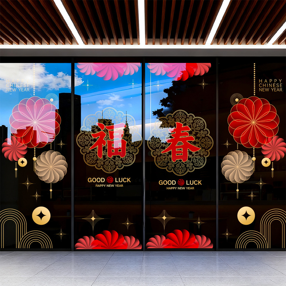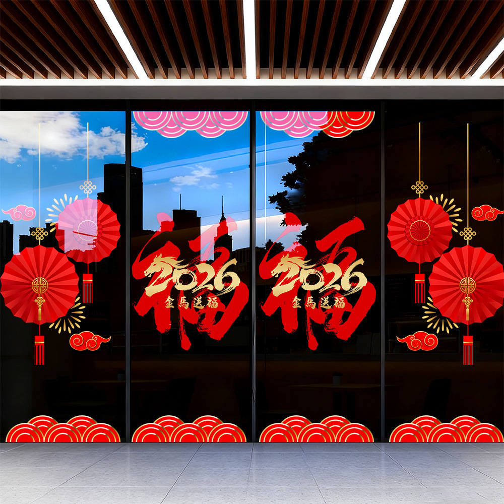 2026年馬年新年窓飾りガラスドアステッカー元旦福文字春節装飾ショーウィンドウ静電ステッカー窓ステッカー