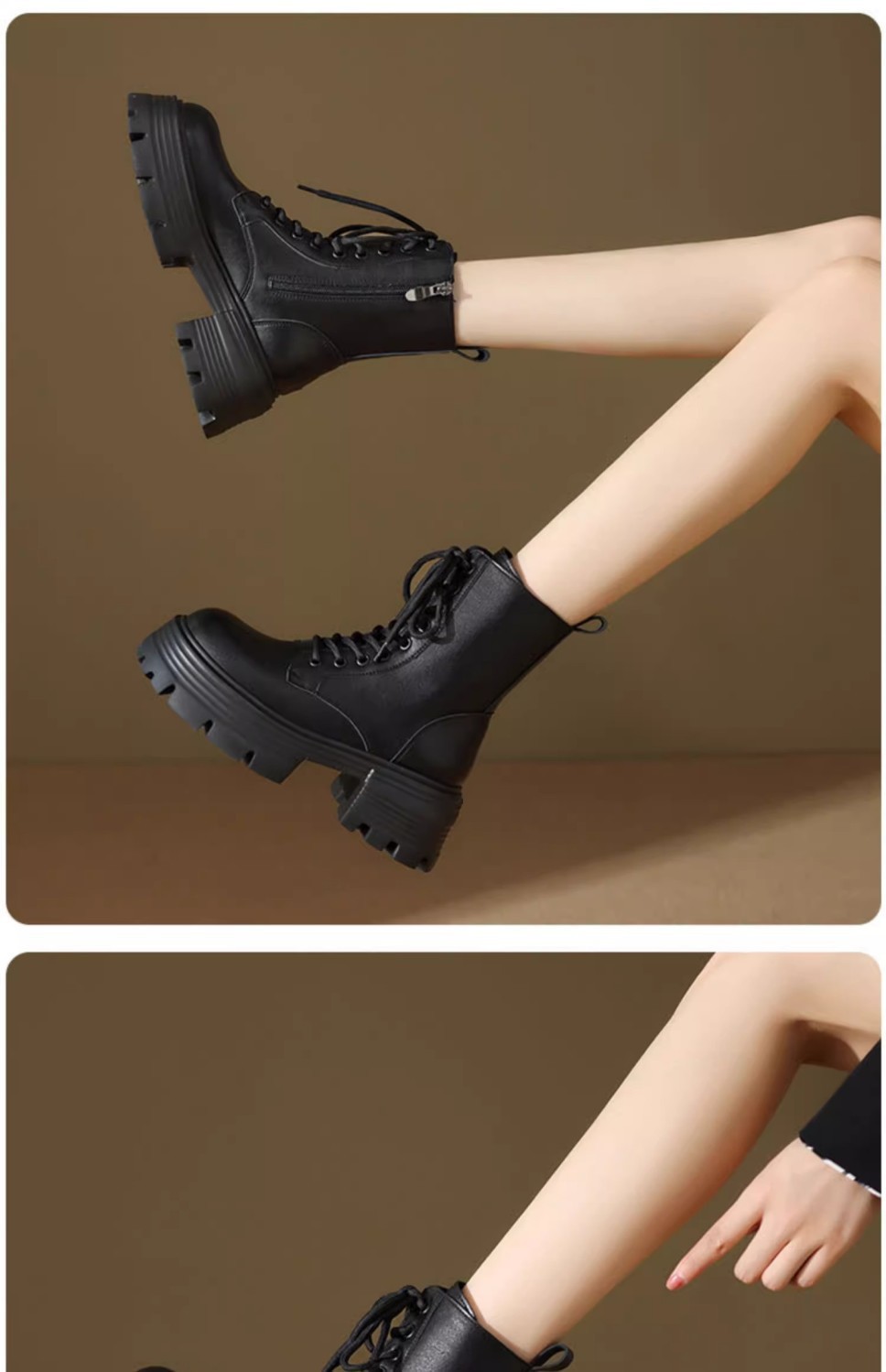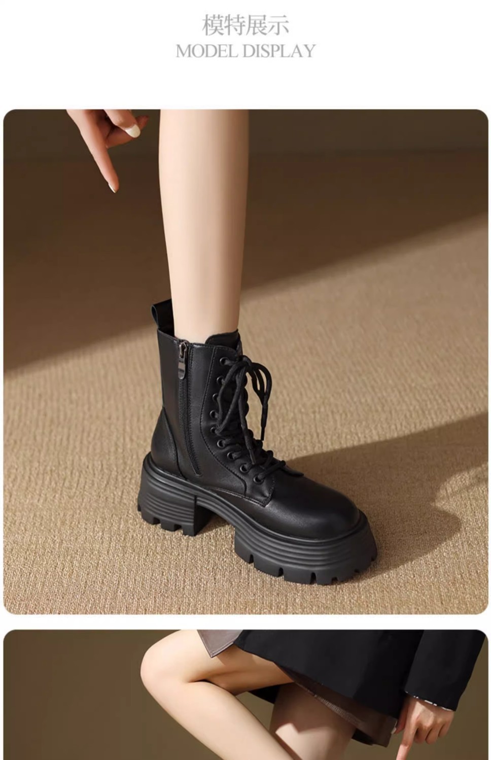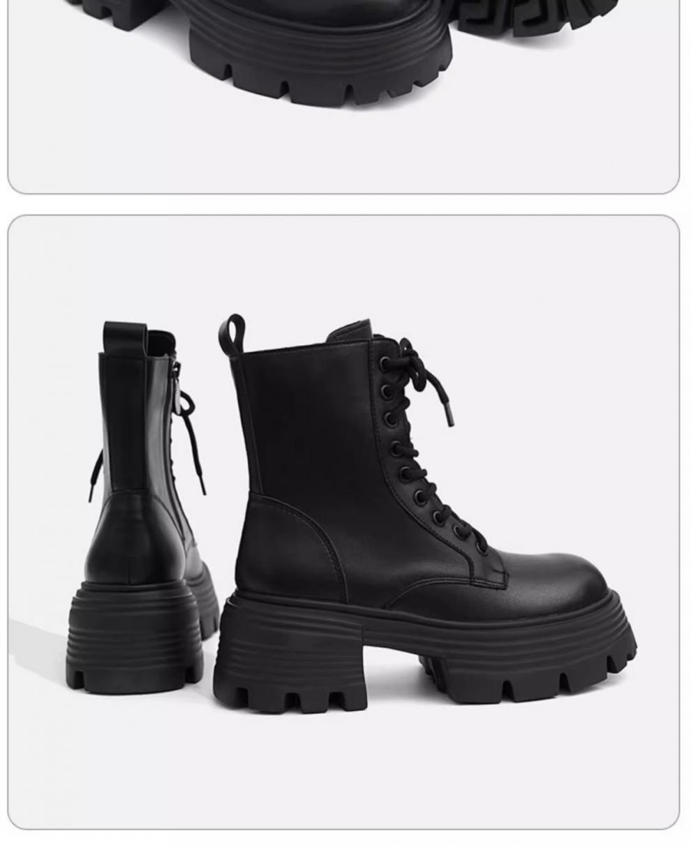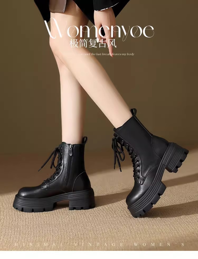 厚い底の高くなるマーティンの靴の女性の2024の新型の秋冬の百合のベルベットの英倫のショートブーツのやせている靴の黒色の雪のブーツ