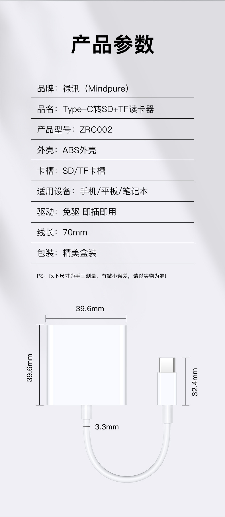 ZCR001 TYPE-C - SD カード リーダー (箱入り),ZCR002 TYPE-C - SD+TF デュアルポート カード リーダー (箱入り),ZCR110 TYPE-C - SD+TF+OTG カードリーダー,ZCR111 Apple to SD+TF+OTG カードリーダー,ZCR108 Apple/TYPE-C/USB マルチデバイスカードリーダー
