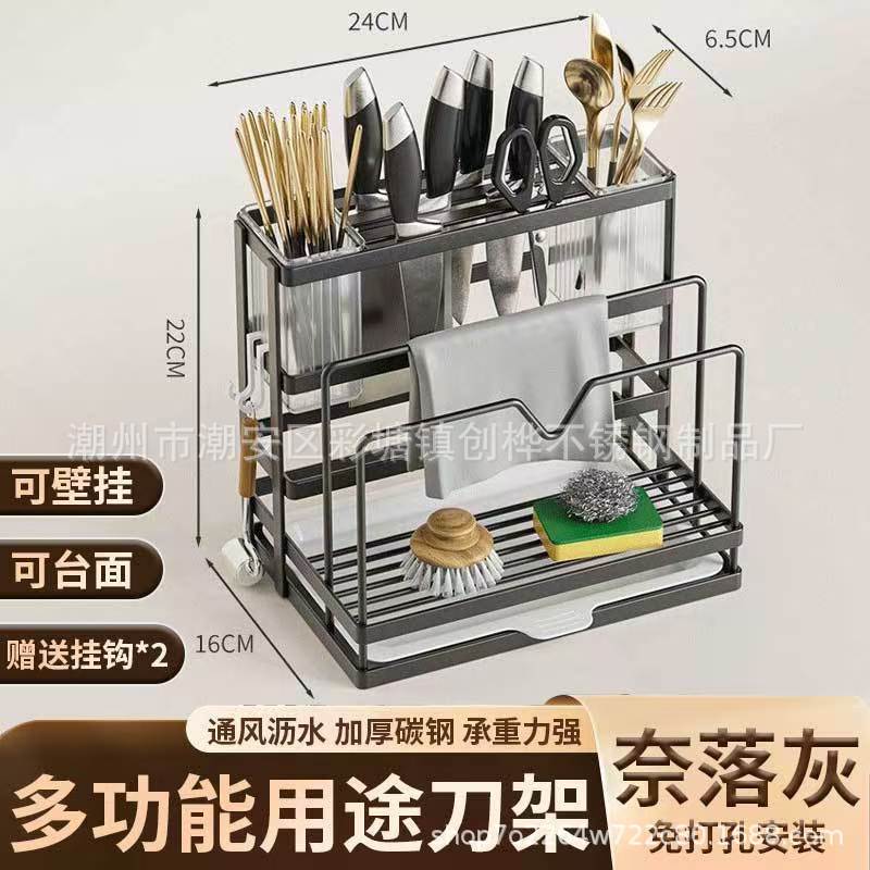 キッチン収納ラック 包丁立て 穴あけ不要 多機能 壁掛け 箸立て 包丁ホルダー フック式 箸 炭素鋼 収納ラック