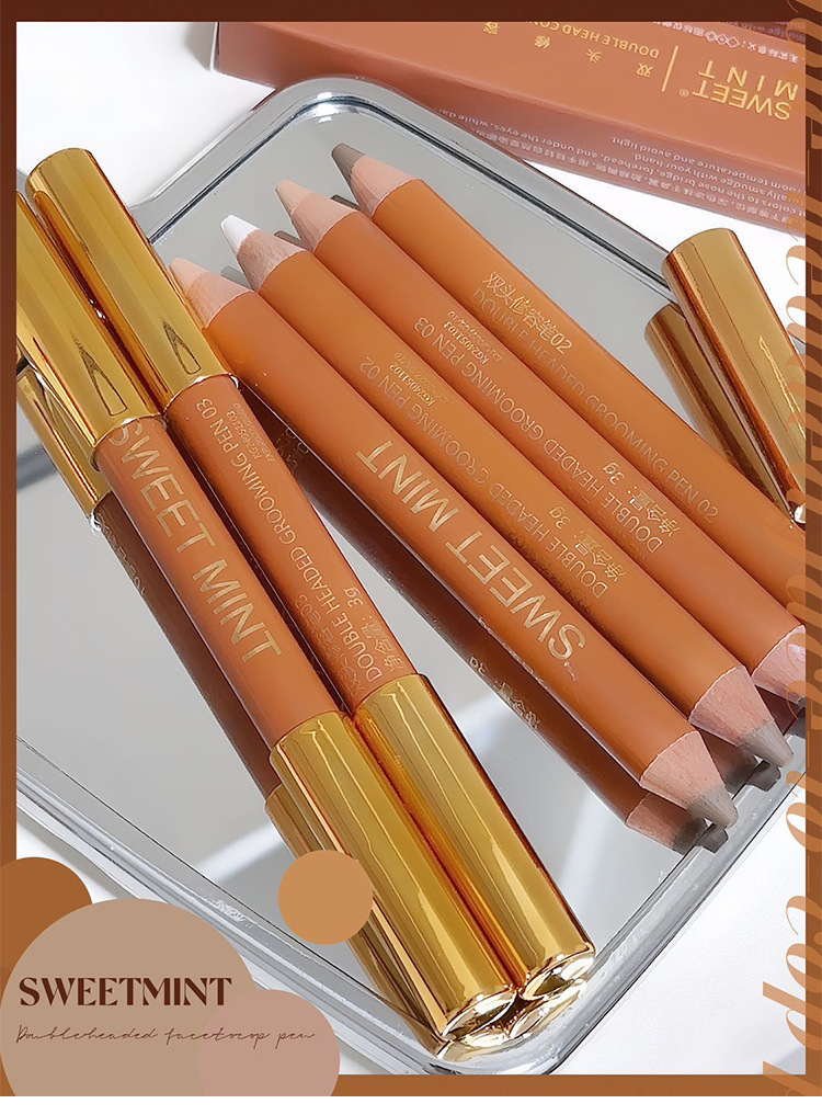 Sweetmintダブルヘッドの修容ペンの顔の明るい影の鼻の影の自然な立体のハイライトの修容は代理をサポートします。