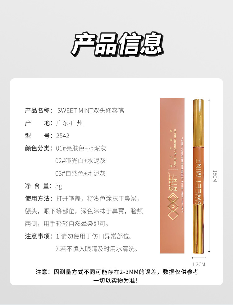 彩妆SWEET MINT双头修容笔哑光提亮面部阴影鼻影高光修容一体棒