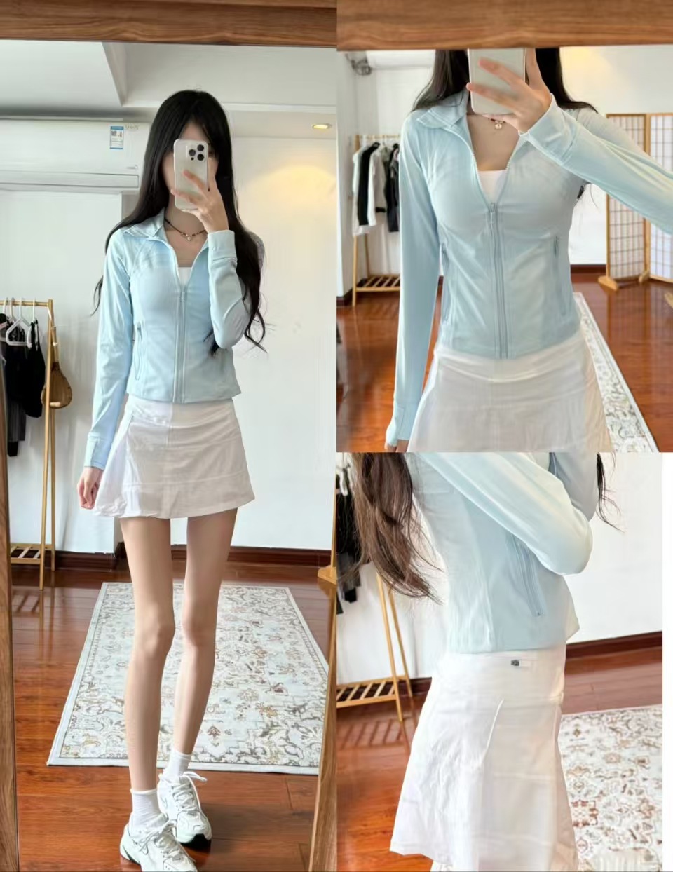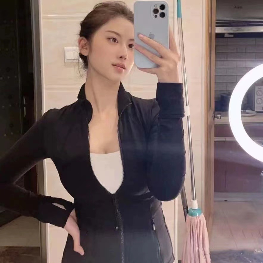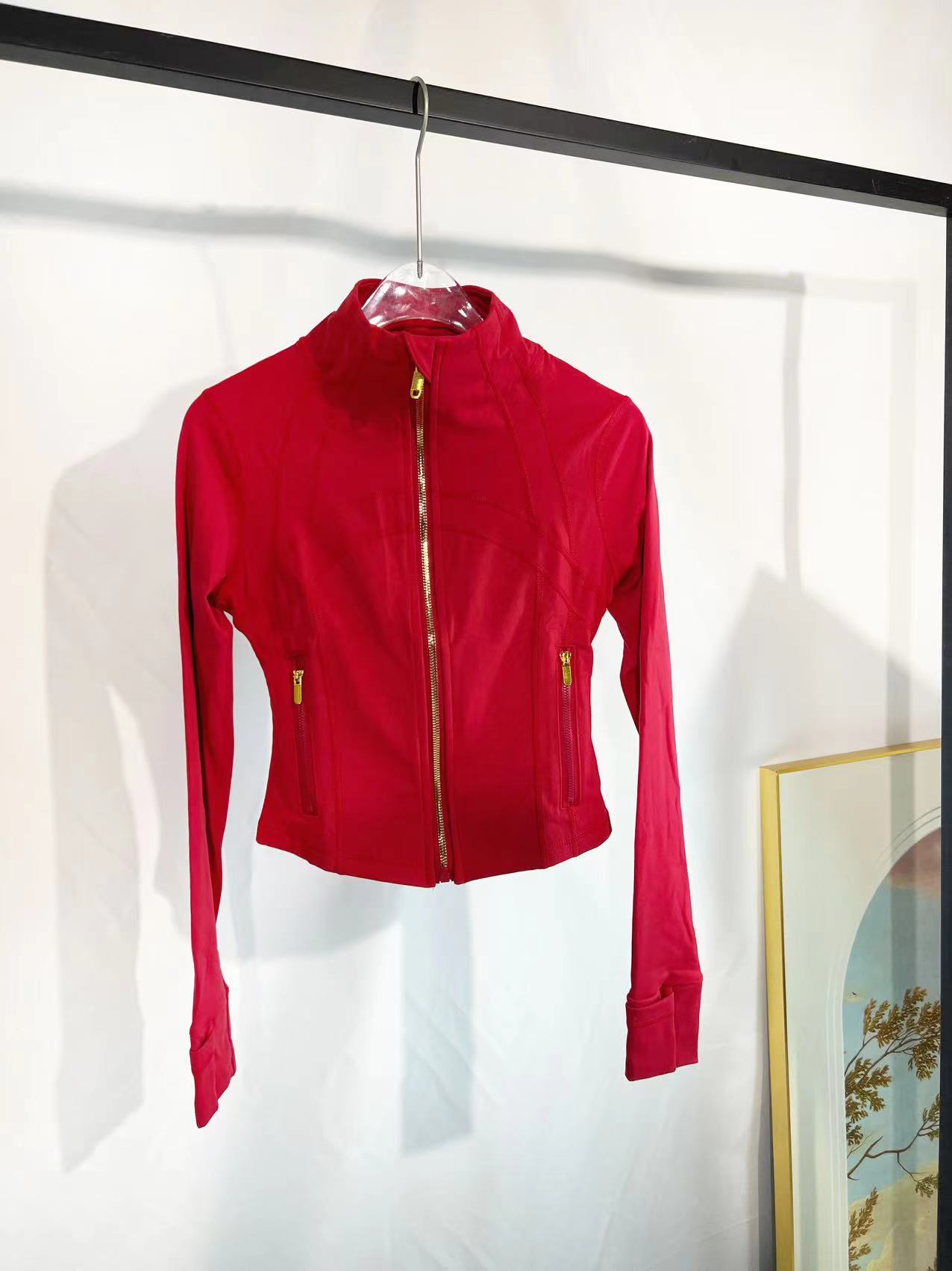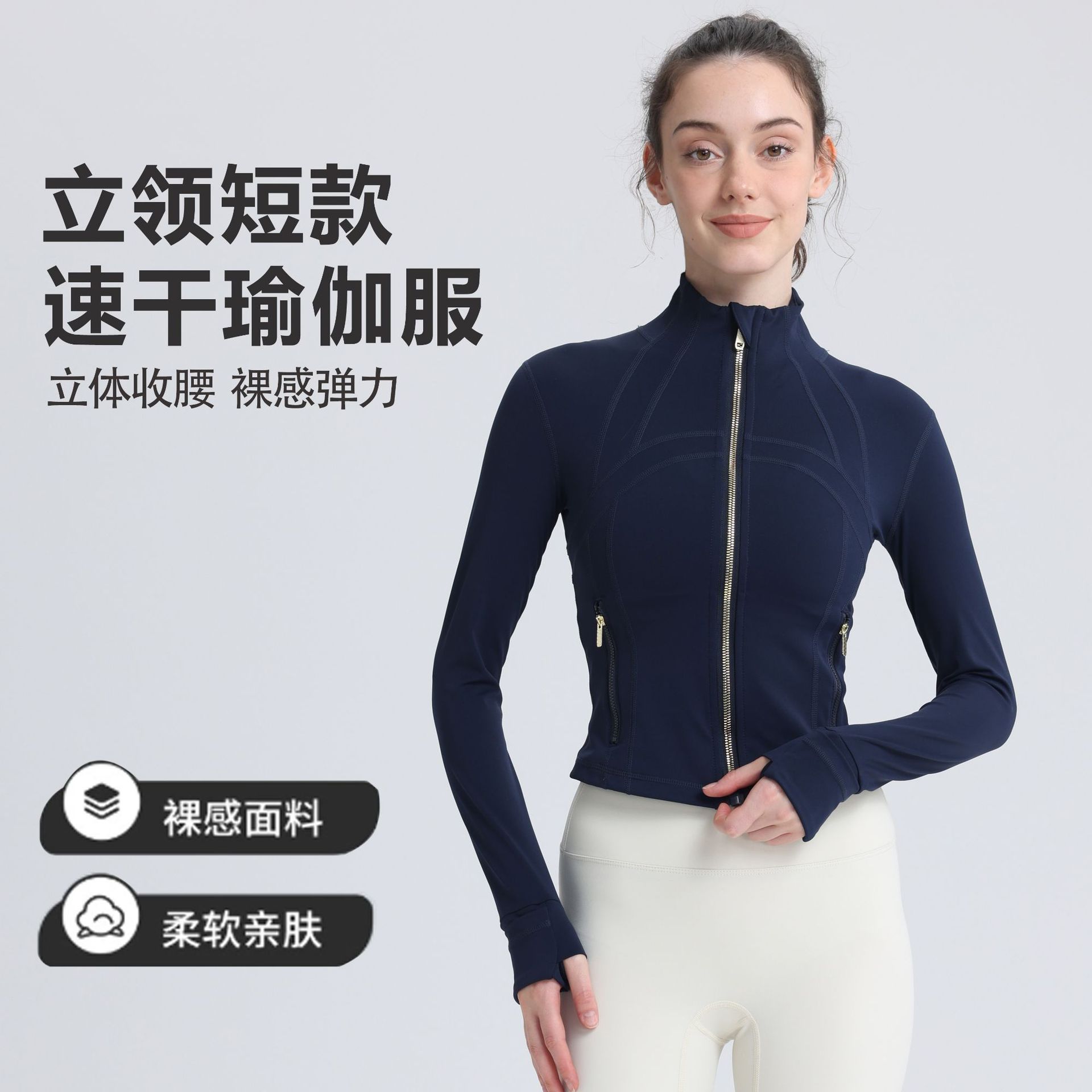 ショートゴールドジッパーlu春両面起毛デフィントップスリムフィットストレッチ速乾スタンドカラージャケットヨガジャケット