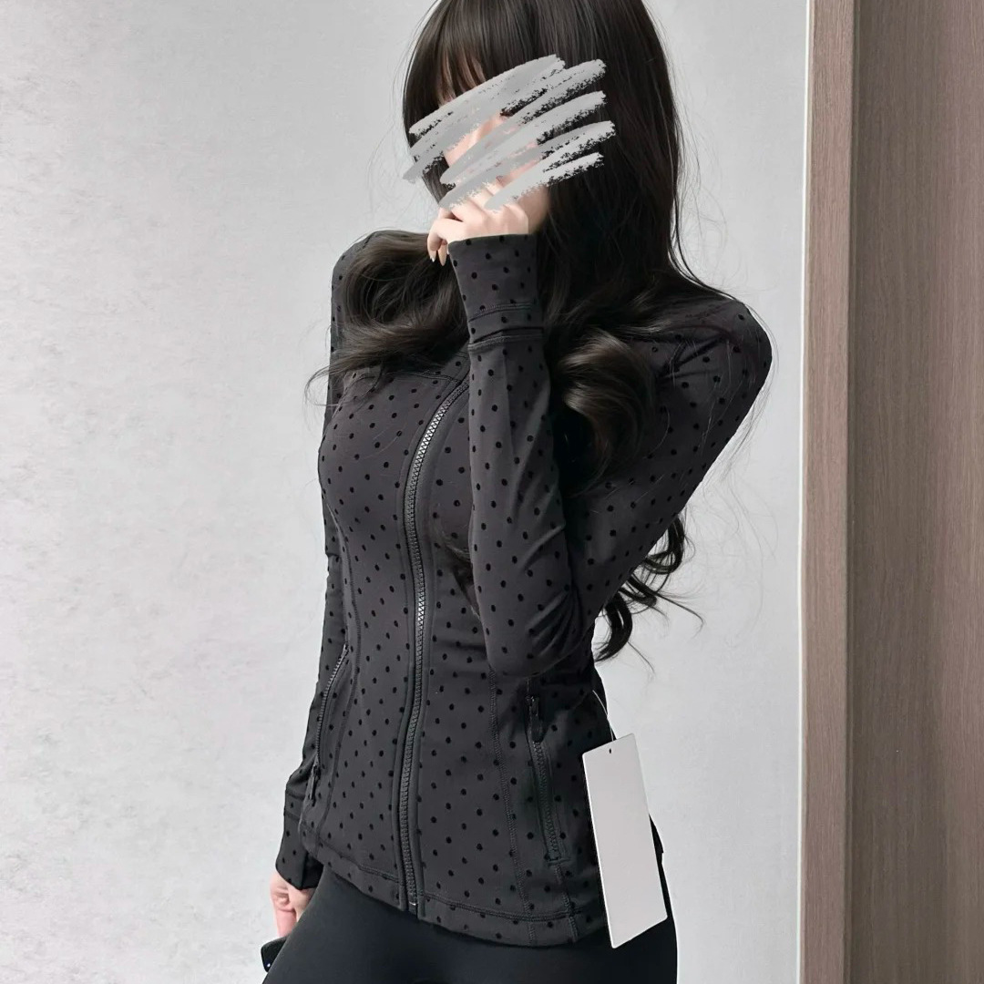 新品波点植绒立领瑜伽服磨毛高弹女修身显瘦夹克上衣户外运动外套