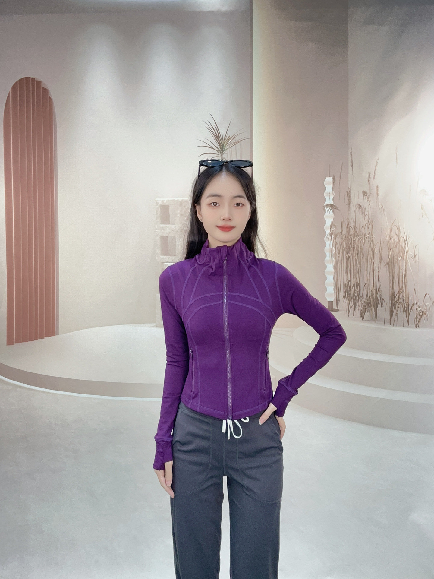 ルル ヨガ ジャケット レディース スタンドカラー ストレッチ スリム トップ ジッパー フィットネス 長袖 起毛 ヌード スポーツ ジャケット