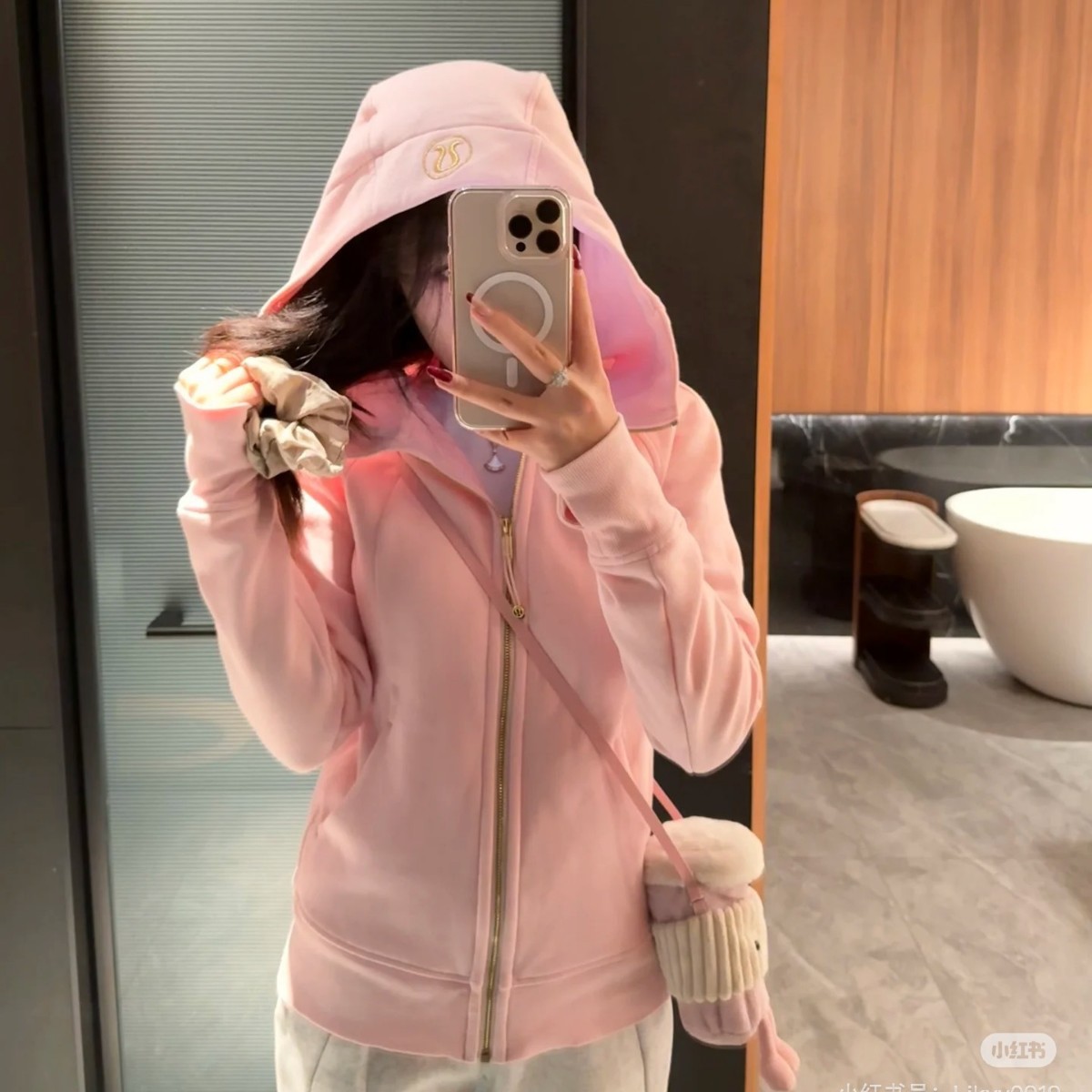 lulu原标刺绣Scuba卫衣修身连帽拉链休闲运动瑜伽外套加绒上衣女