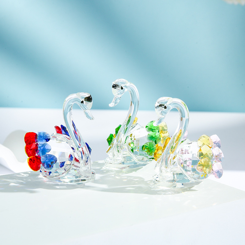 メーカー直販の新型水晶白鳥置物新婚プレゼント