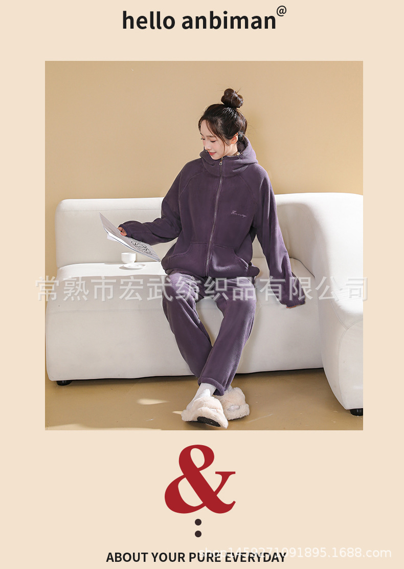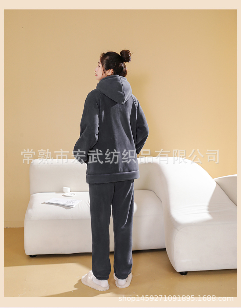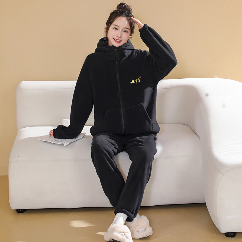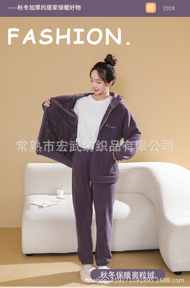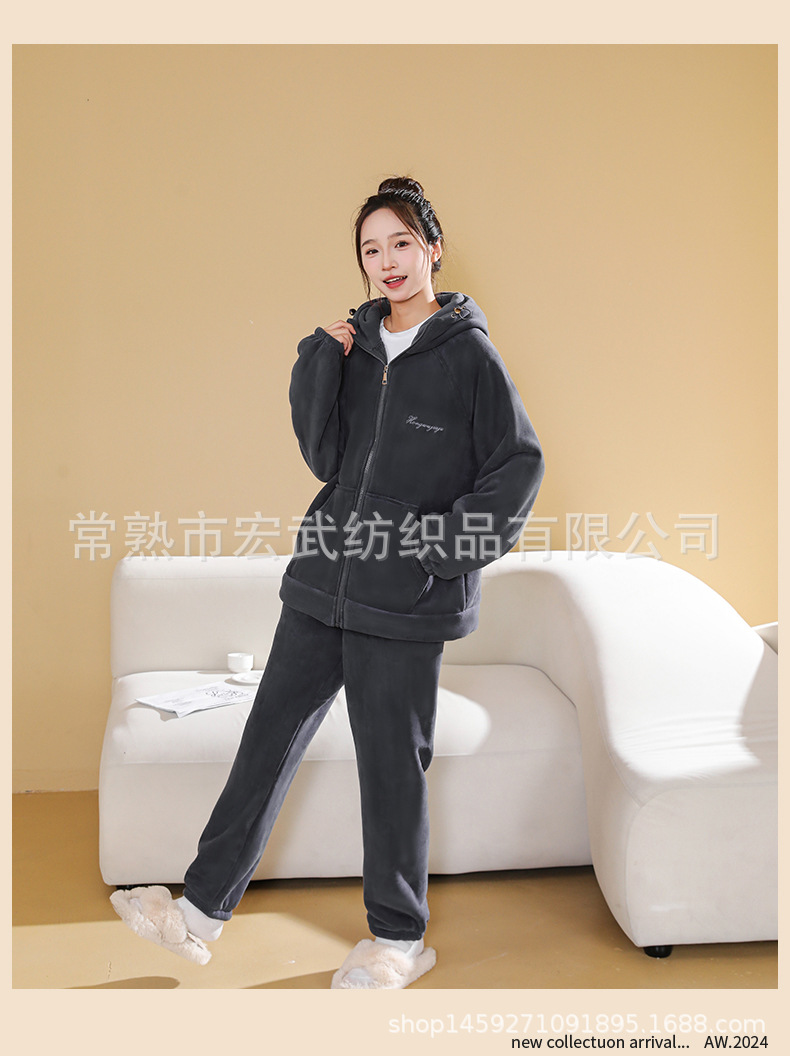 冬季海豚绒女保暖连帽加绒加厚奥利绒休闲宽松可外穿家居服套装