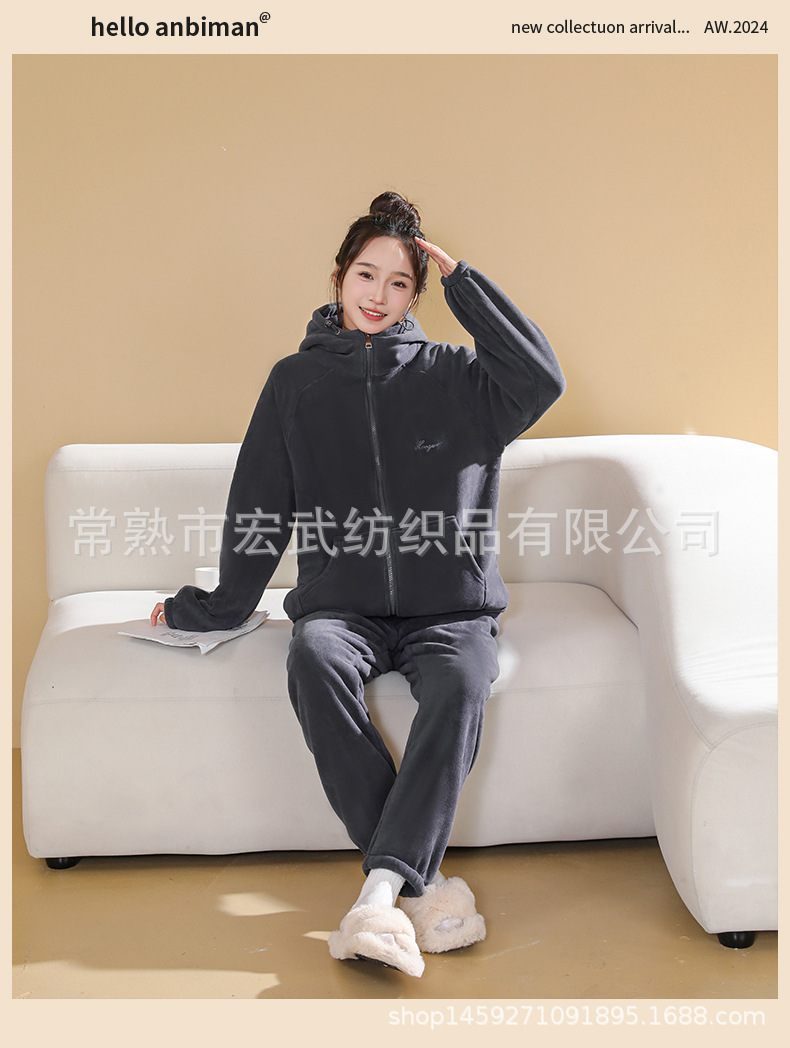 カップルのパジャマ冬の女子学生のサンゴの毛の卸売りとベルベットの厚い襟のファスナーのパジャマの女性の部屋の服のスーツ