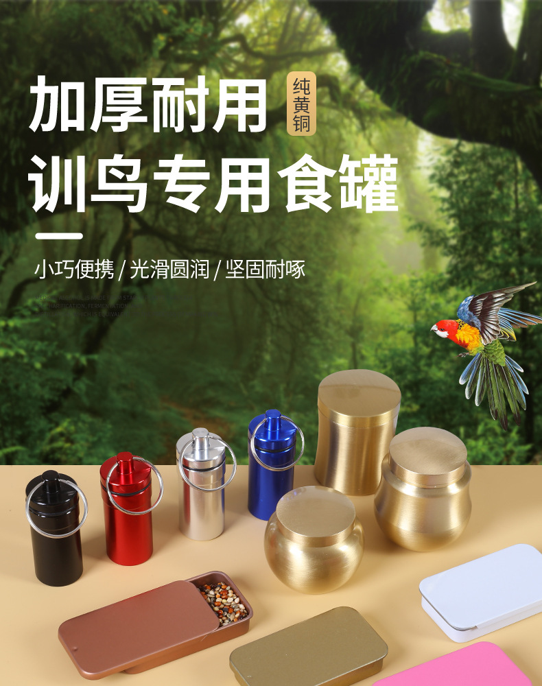 訓鳥食箱訓鳥食缶オウム訓練道具奨励スナック虫箱玩具真鍮専用鳥食缶