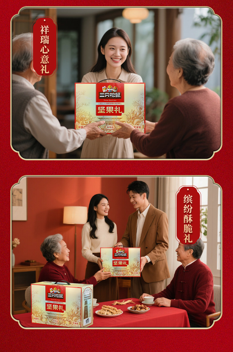 おせち新商品三匹リス新年礼1190g/9包スナックセットナッツ礼箱企業共同購入プレゼント