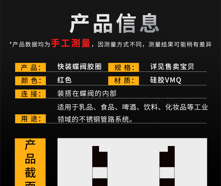 食品級バタフライバルブの弁体密封リングステンレスの快速バルブ密封パッド衛生級赤色シリカゲルガスケット