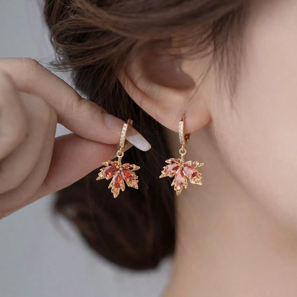 跨境超仙红色枫叶耳扣耳环新款小众设计感高级大气轻奢网红耳饰