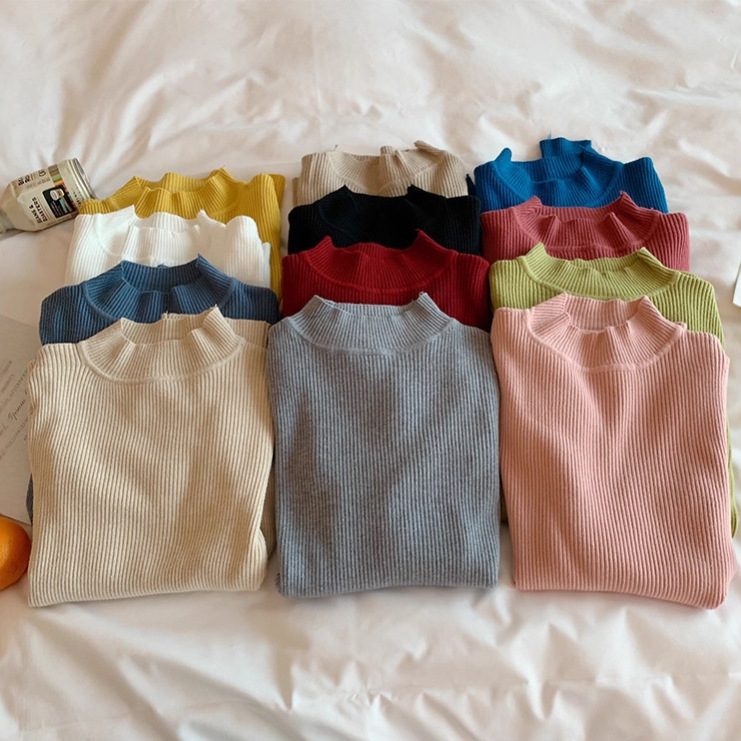 2025年秋新作 レディース ハーフタートルネック 長袖ニット インナー スリム 無地セーター