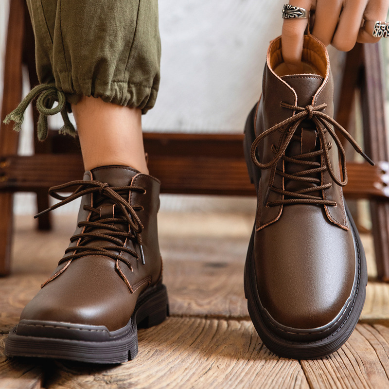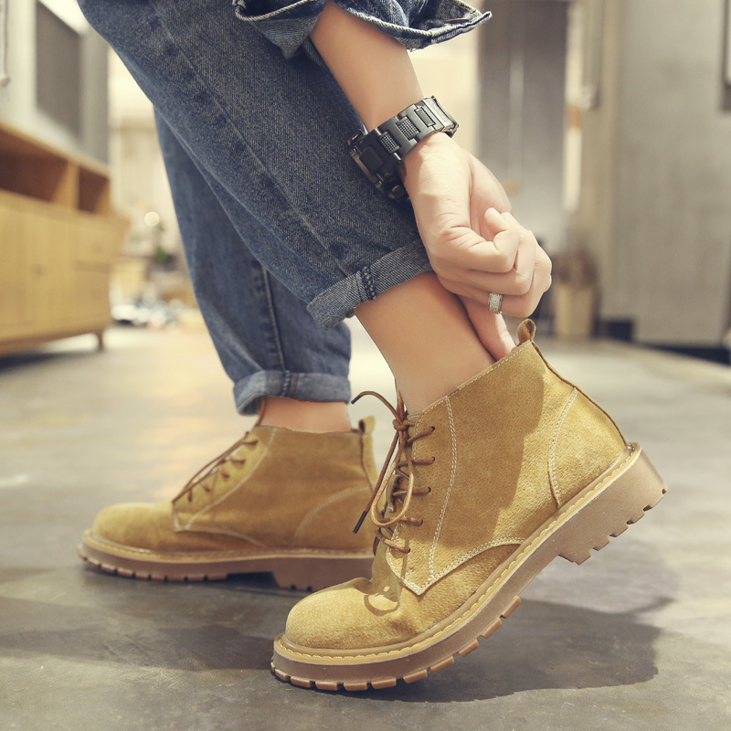 マーティンブーツ男春の街頭風の通気性とベルベットのレトロな高組真皮日系高級感のある砂皮工装靴