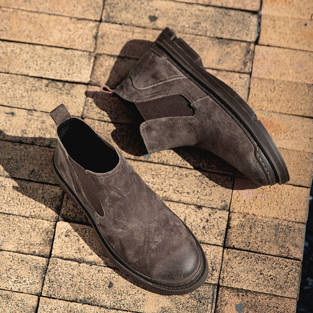 マーティンブーツ男性真皮英倫風高助革靴起毛中助ショートブーツ反絨皮フロストチェルシーブーツ男