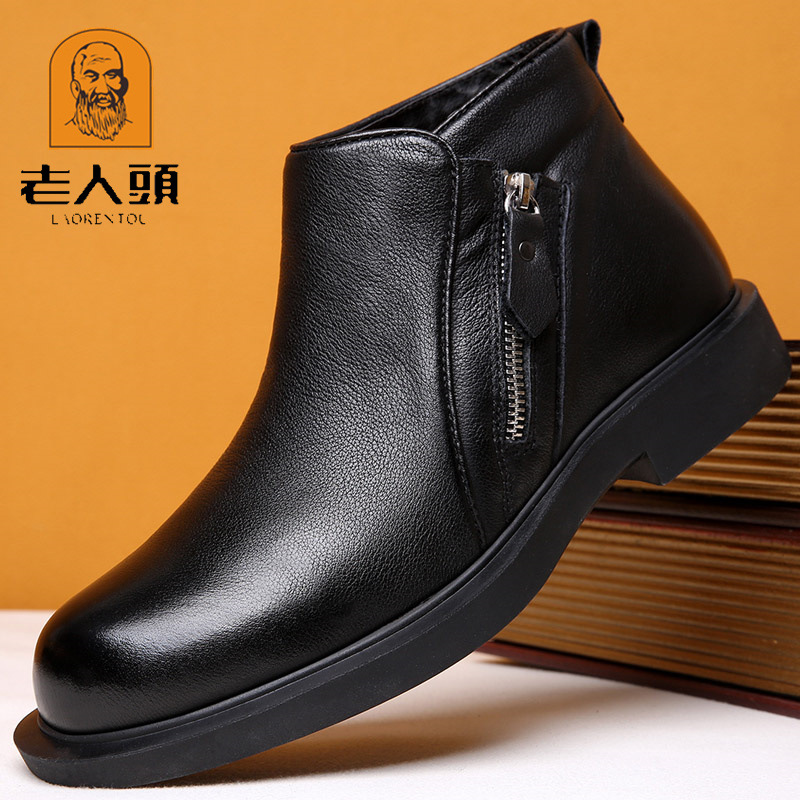 老人头棉鞋男士皮靴冬季加绒头层真皮羊毛保暖商务高帮正装皮鞋男