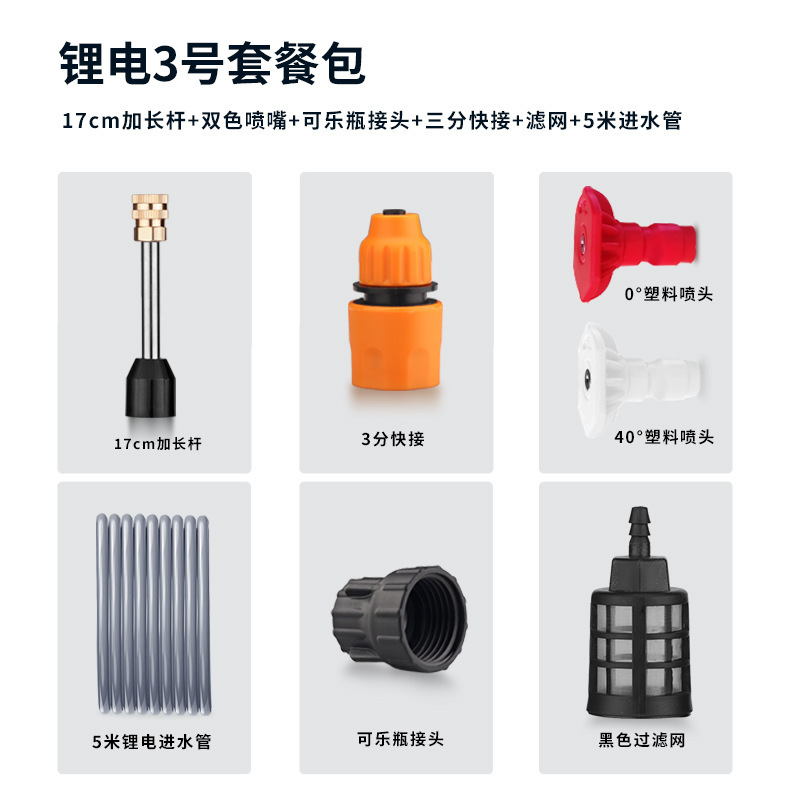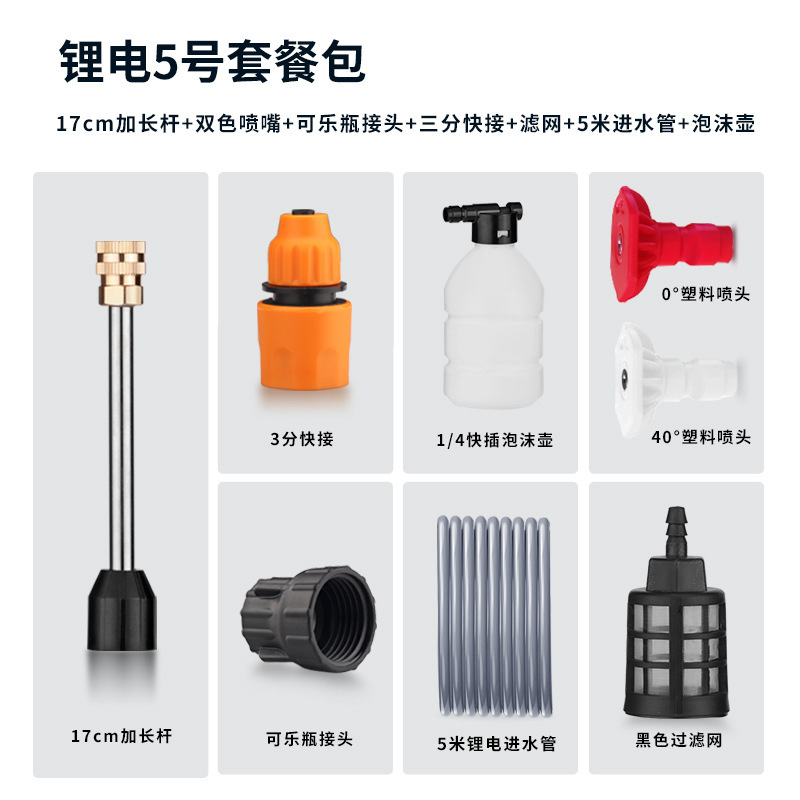 ワイヤレス洗車水ホースリチウム電池高圧水鉄砲ジョイントフィルターアクセサリー 5m 家庭用洗浄機ツールクロスボーダー