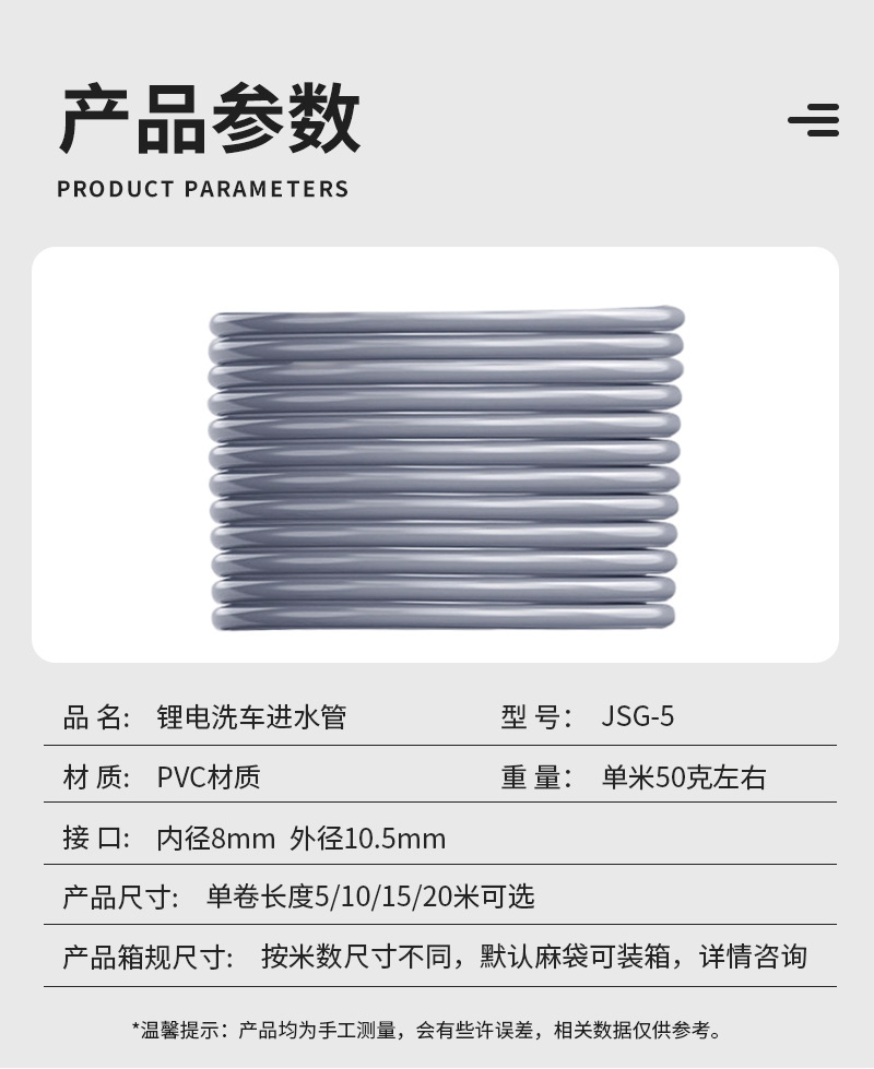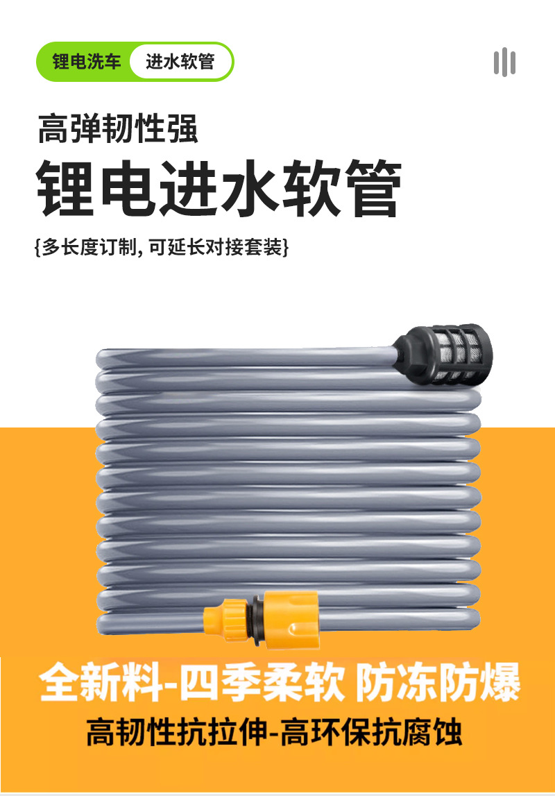 无线洗车机水枪锂电洗车进水管软管10米清洗机配件洗车水管延长