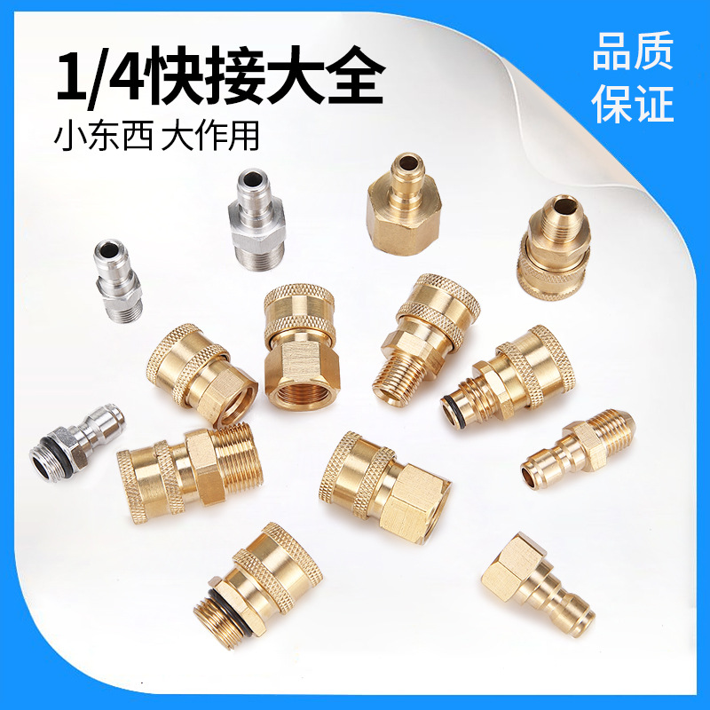 高圧洗車機1/4クイックコネクター水鉄砲全銅メス接続ステンレスニップルオス接続アクセサリークイックプラグ
