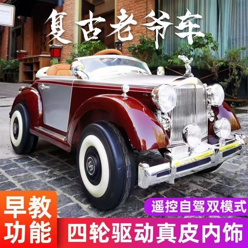 レトロクラシックカー子供用電気自動車四輪子供用座席リモコン充電式ベビーカー四輪駆動電気自動車
