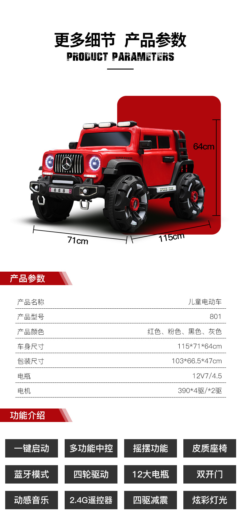 奔驰大g儿童电动车四轮宝宝玩具遥控汽车可坐人男女小孩充电四驱g