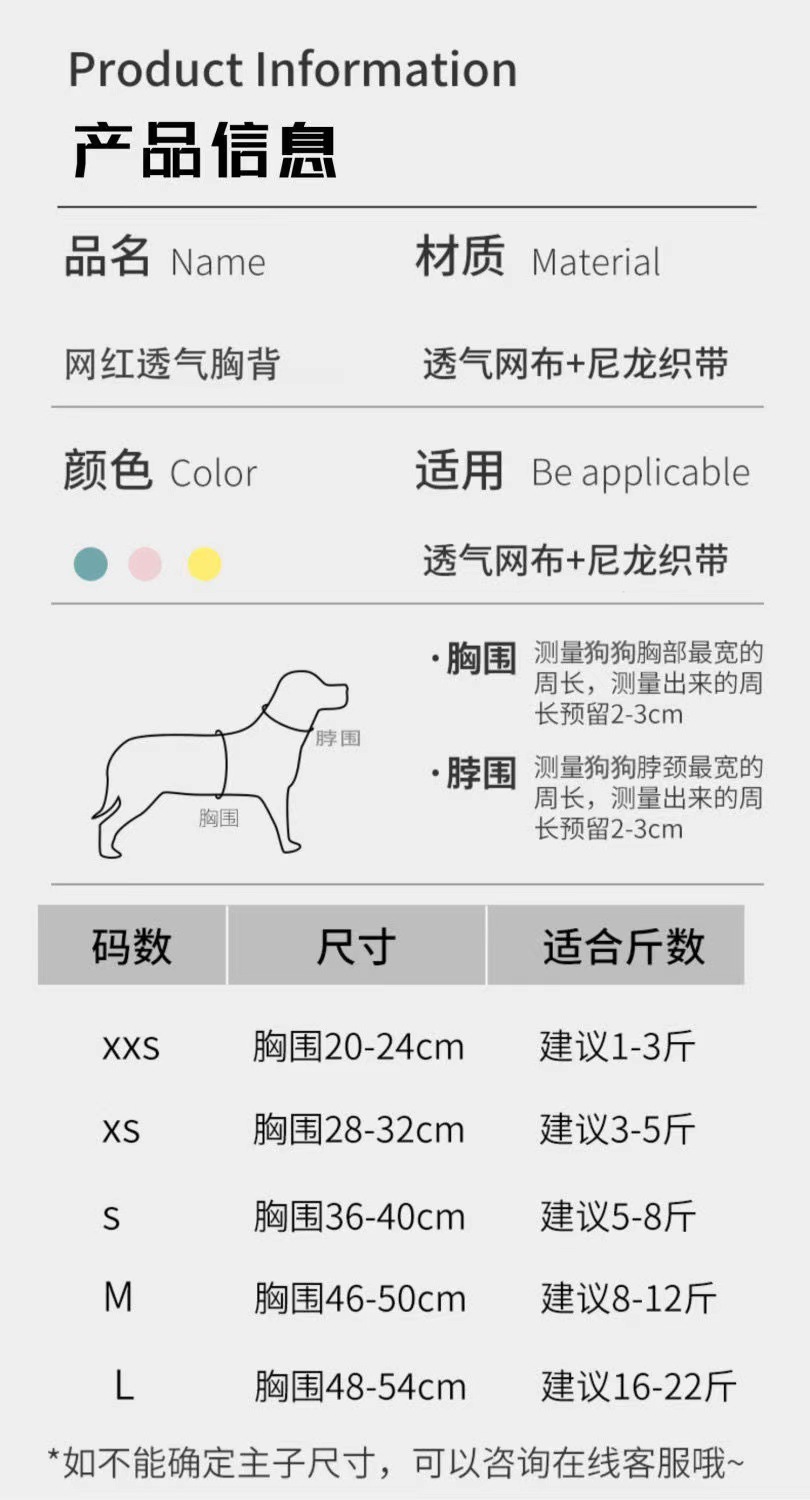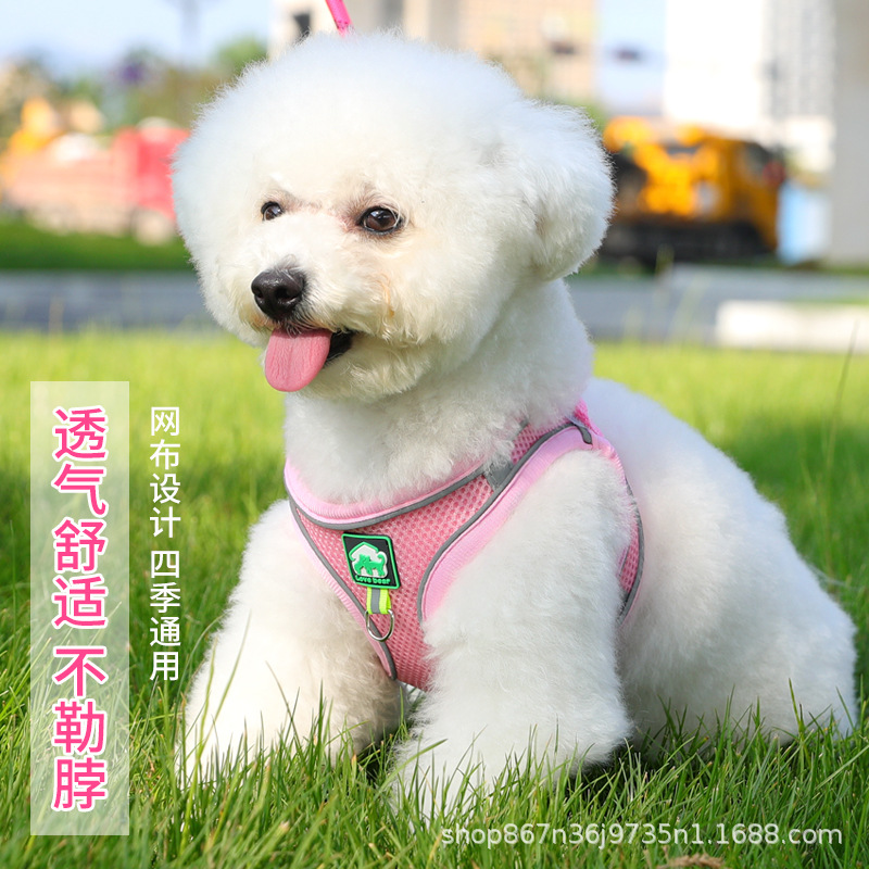 犬牽引紐夏網面ベスト式ドッグラン小型犬比熊テディ専用胸ストラップ犬チェーン