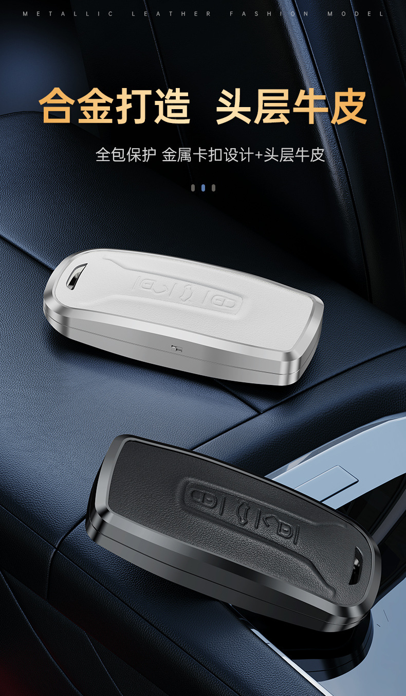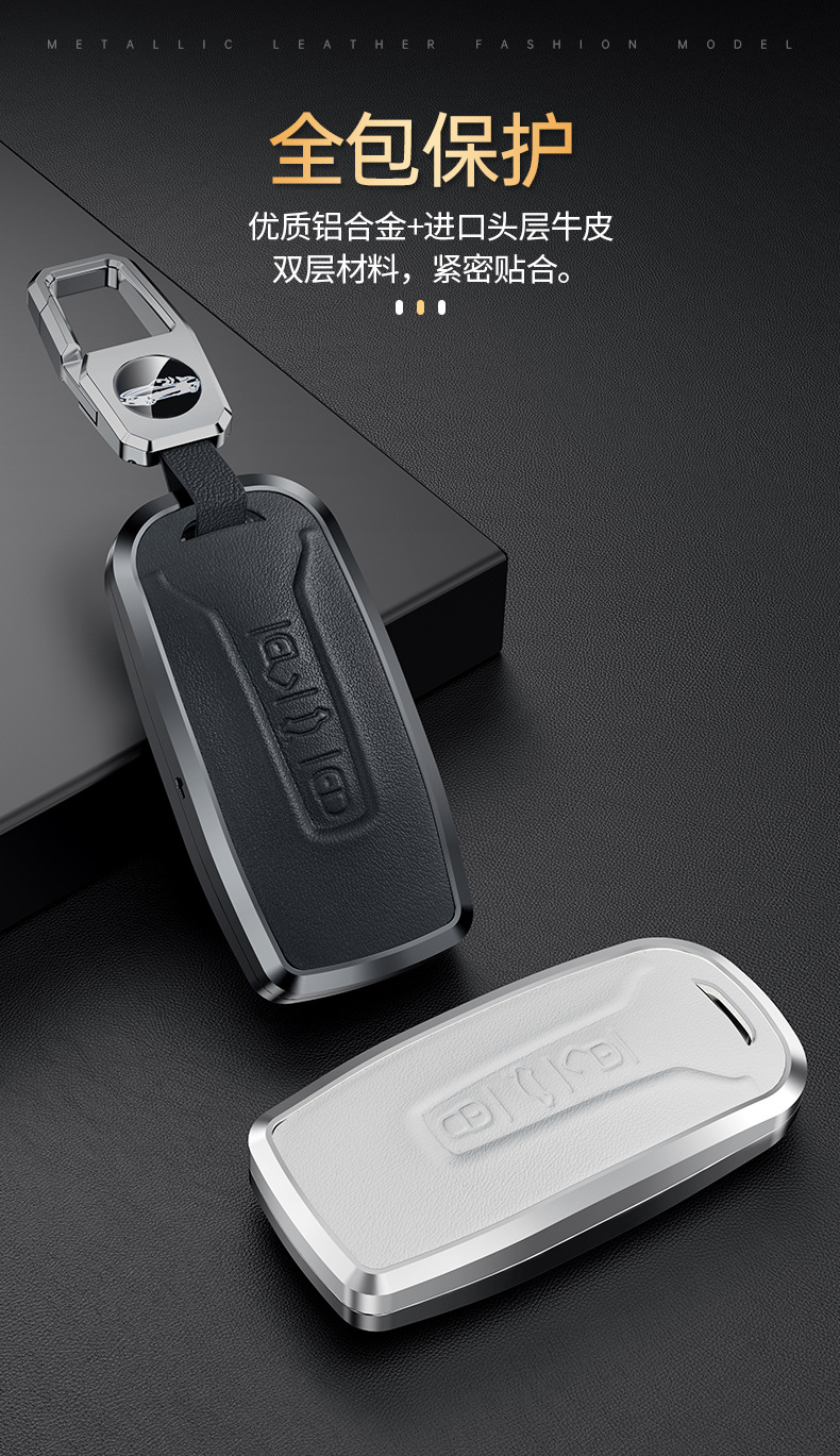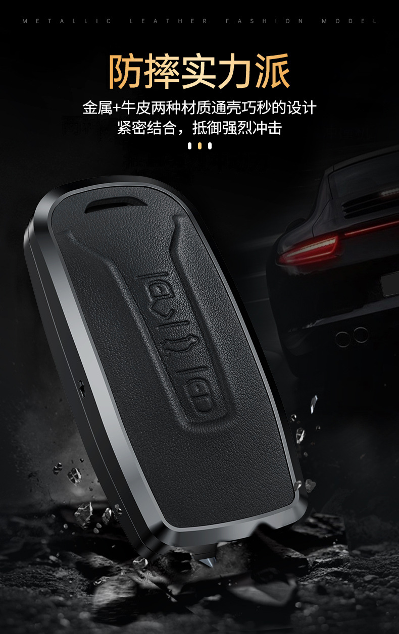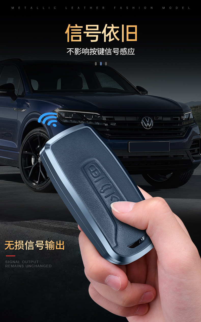适用于23款大众途锐车钥匙套真皮19-23款途锐进口全包金属壳包扣