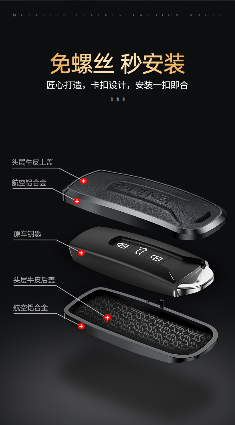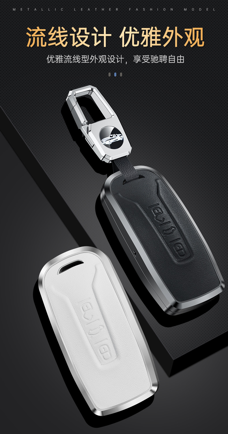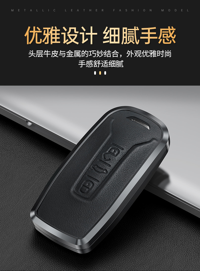 适用于23款大众途锐车钥匙套真皮19-23款途锐进口全包金属壳包扣