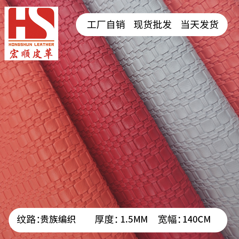 厂家直销0.7mm纯色三线菱格皮革手袋箱包鞋材家具人造革皮料批发