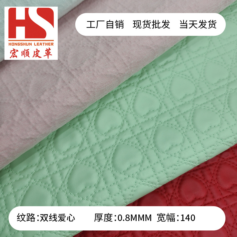 0.9mmPVC单针仿绣线双线菱形格纹钱包化妆包眼睛盒包装盒出口皮革