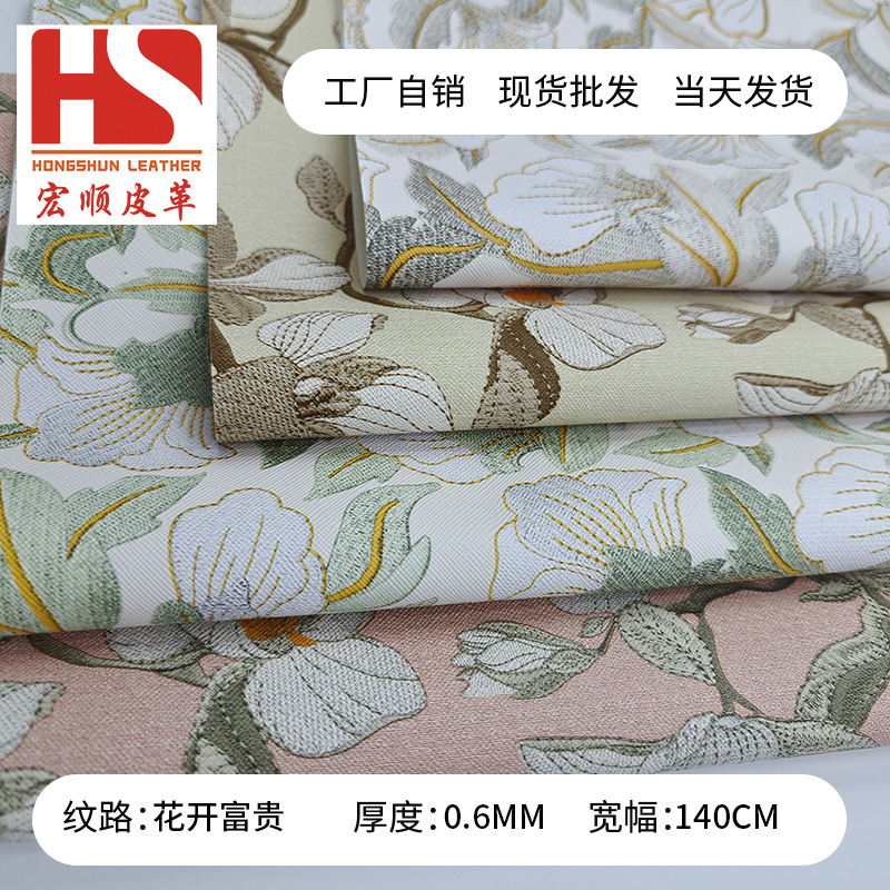 中国风锦绣印花皮革PVC网眼底适合箱包化妆包家居手机壳工厂现货