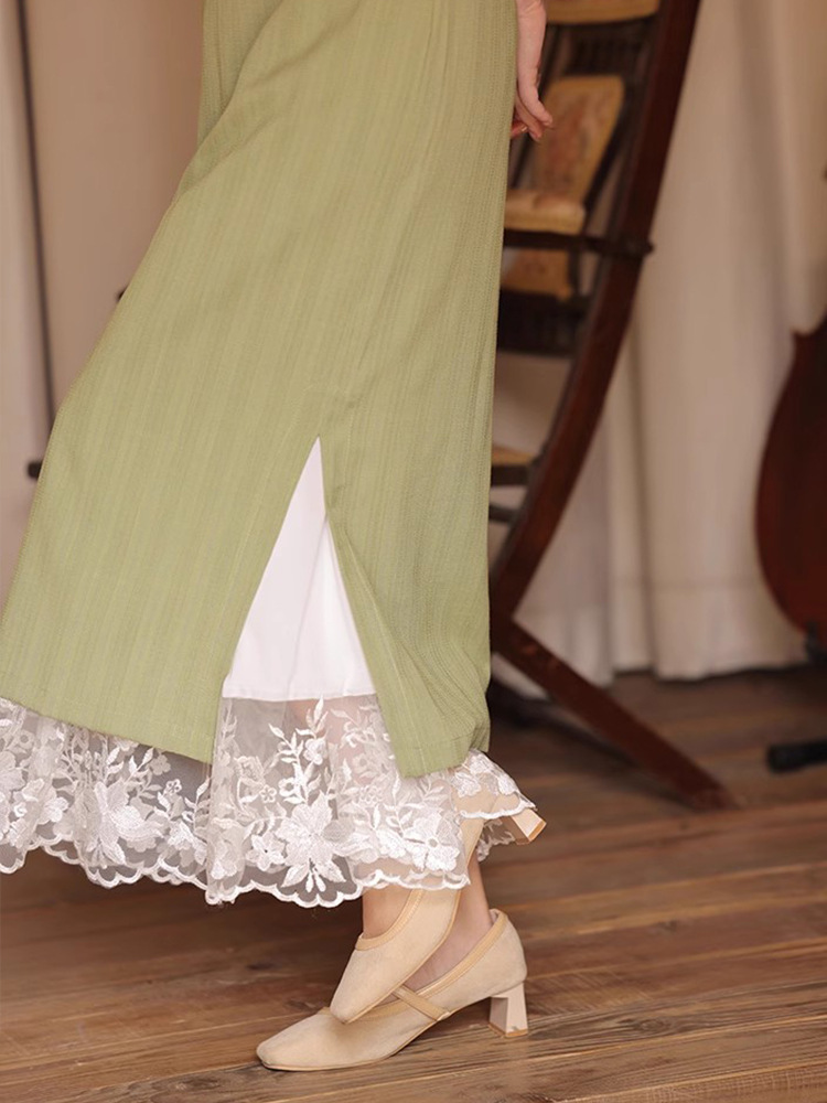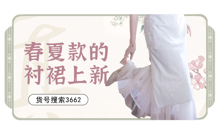 チャイナドレスのインナーレースメッシュスカート、ウエストゴム、レトロで万能なチャイナドレス、ヒップをカバーしてスリムに見せるボトムス