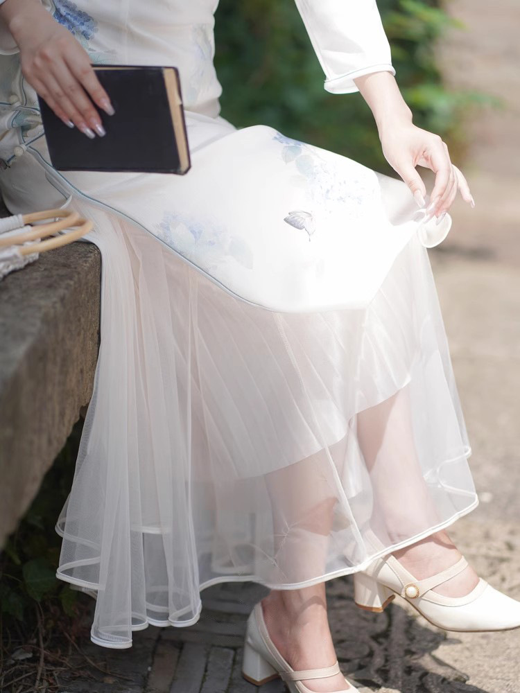 「百合のペチコートの合集」のチャイナドレスのペチコートの中には四季の中のペチコートを重ねて着ています。