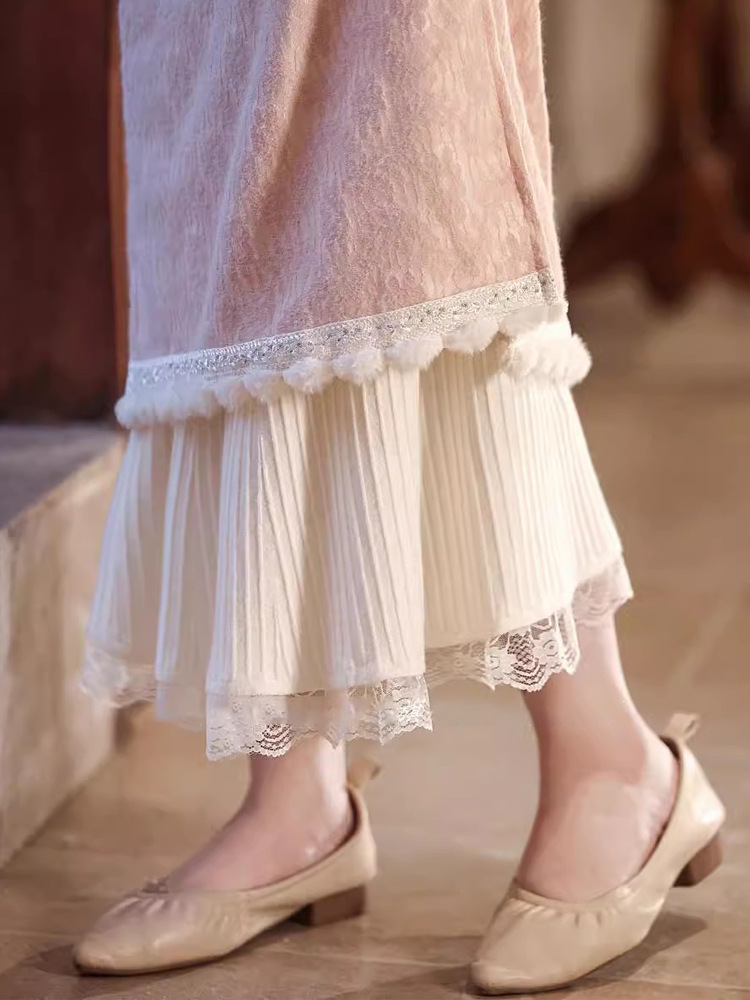 【ペチコート】チャイナドレスの中にレースのスカートが張り付いています。