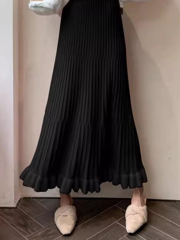 秋冬旗袍专用衬裙内搭汉服马面裙叠穿打底A字半身裙中长款木耳边