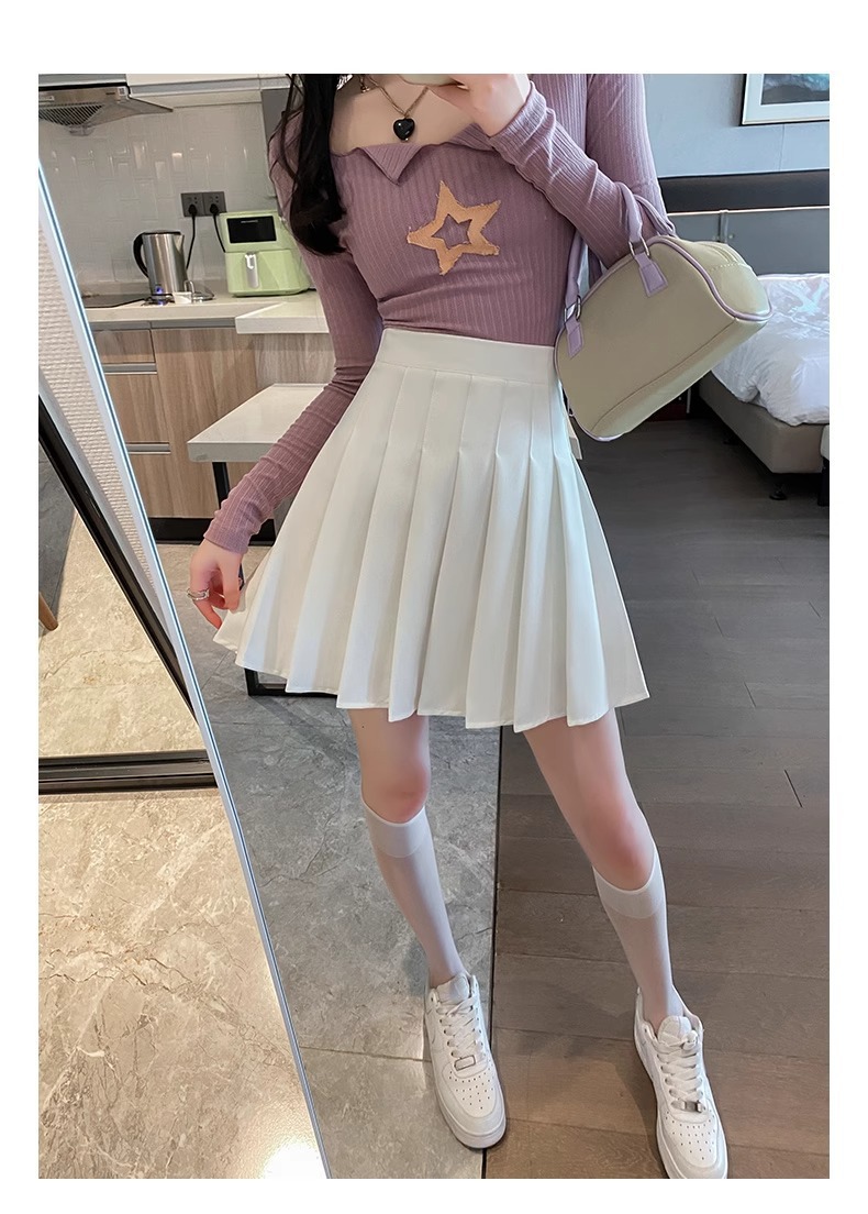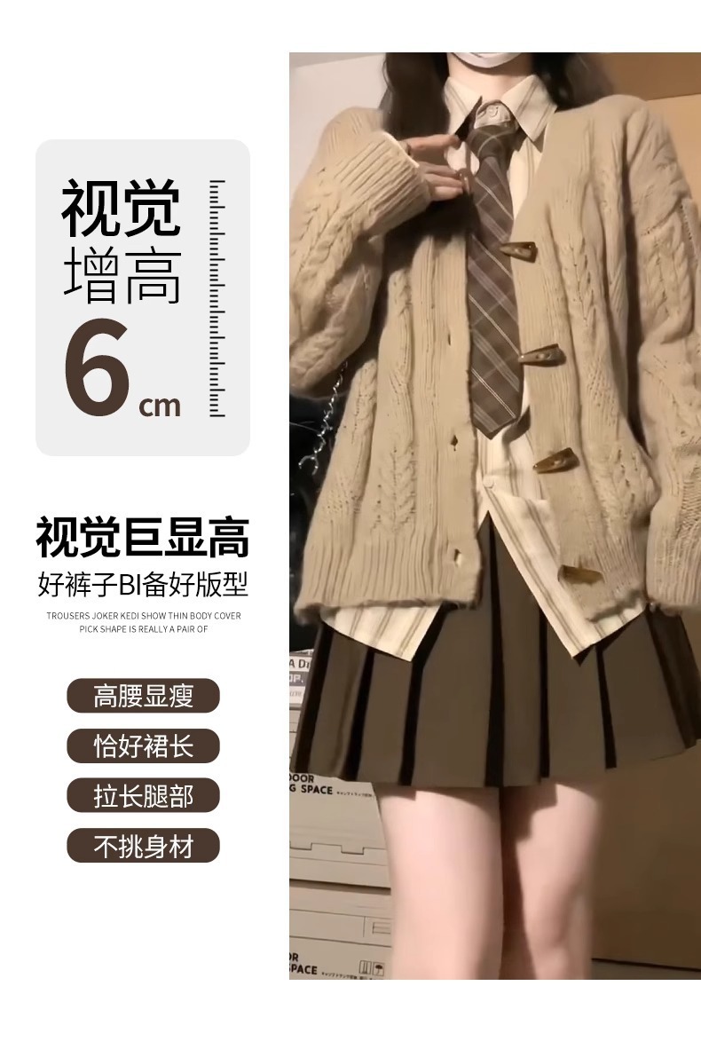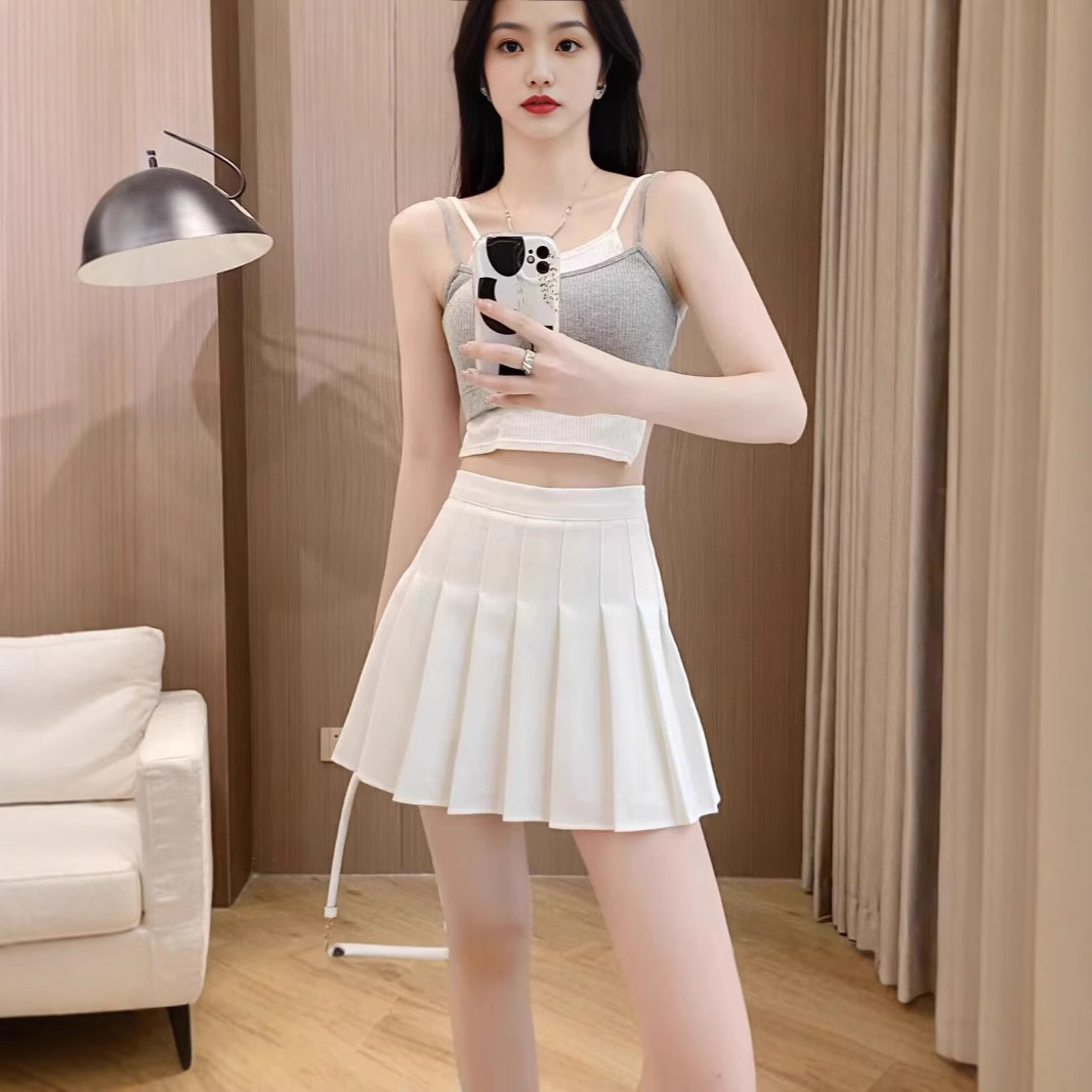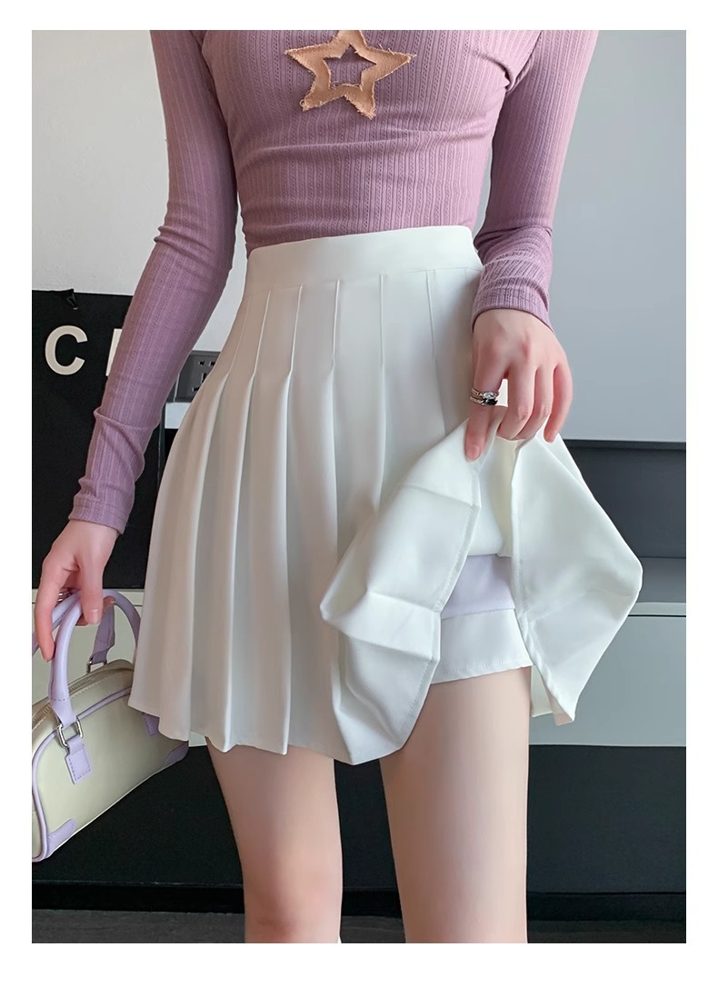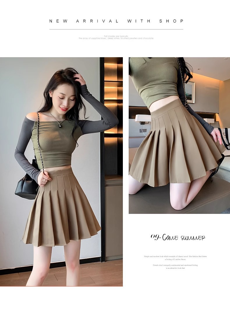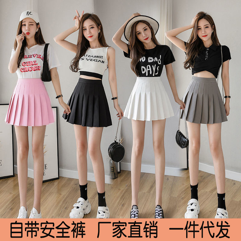 现货高腰百褶裙短裙女 秋季半身裙学院风韩版纯色防走光a字裙批发