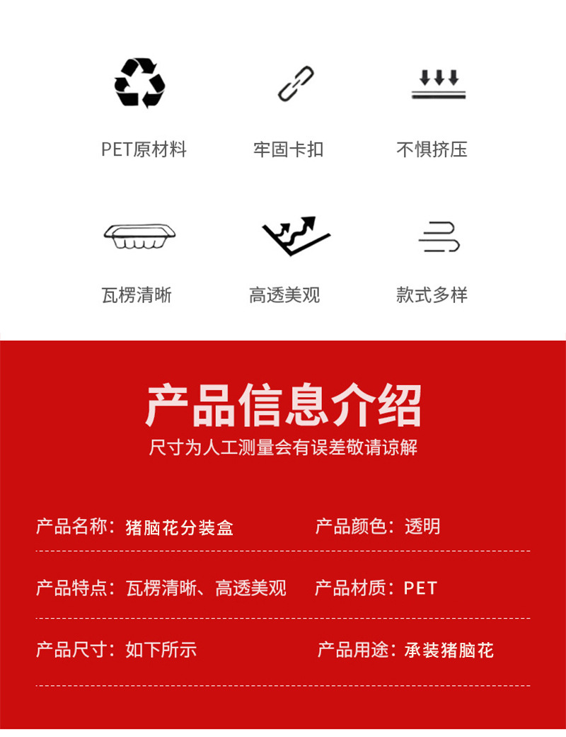使い捨て豚脳トレイ透明プラスチック内托急凍食品包装箱使い捨て冷凍羊脳豚脳箱