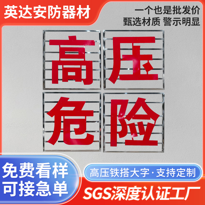 電力鉄塔の大きな字の警告札のステンレスの高圧鉄は危険標識の鉄塔をかけて光を反射して警告します。