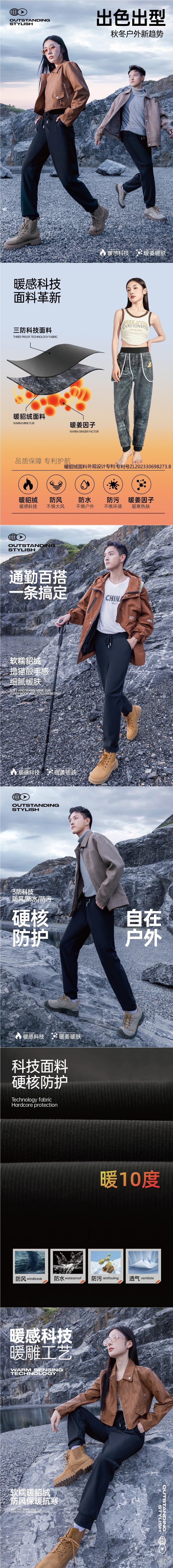 花鸟和色暖10度热敷暖貂裤紫姜驱寒六防黑科技防水防风防污透气