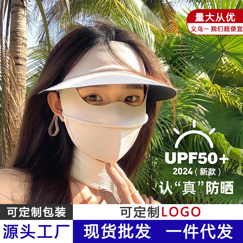 夏の新作フルフェイス日焼け止めマスク、屋外用通気性のあるネック&額一体型、跡が残らない日焼け止め・UVカットマスク