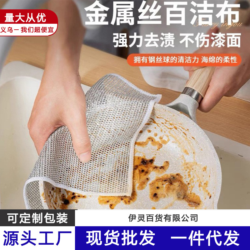 スチールワイヤーボールラグ、スチールワイヤーふきん、キッチンクリーニング専用ノンスティックオイルブラシ、ポットふきん、ポリエステル素材