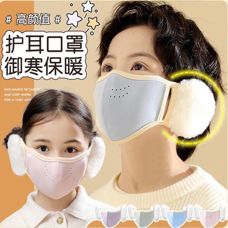 儿童保暖口罩男女童上学耳罩可水洗防风透气一体护耳秋冬防尘面罩