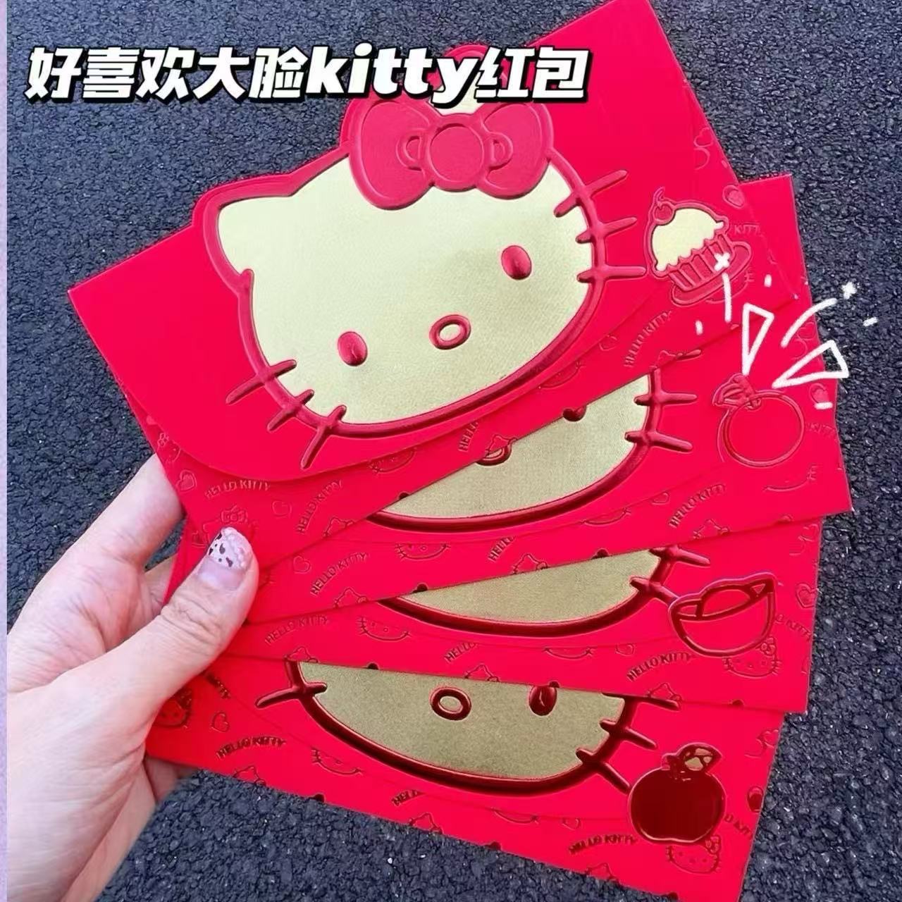 2026年新作 赤い封筒 ピンクのハローキティ 箔押し漫画風可愛い封筒 キティ箔押しお年玉封筒 お祝い クリエイティブ
