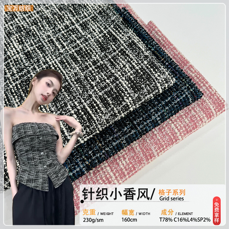 小香風生地金銀糸粗紡織生地粗花女装生地生地メーカー卸売り
