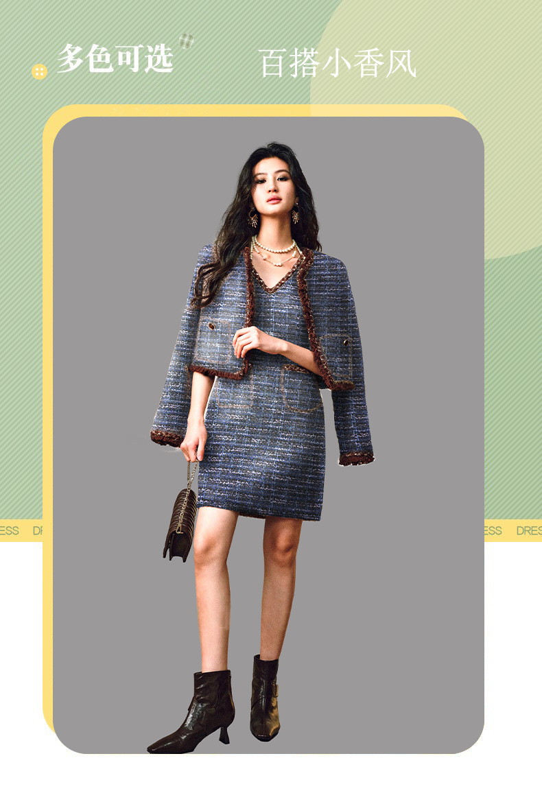 秋冬弾力メリヤス小香風生地格子コートスカートベスト