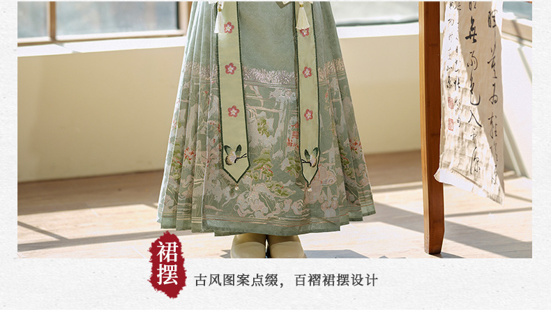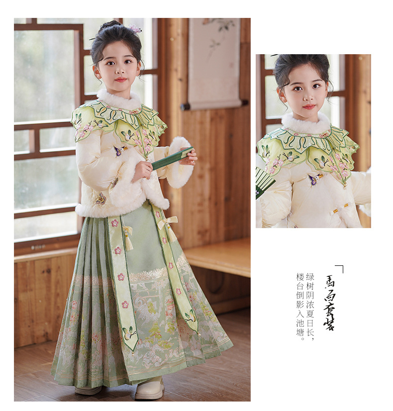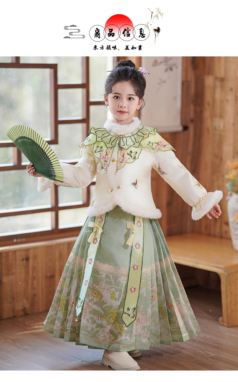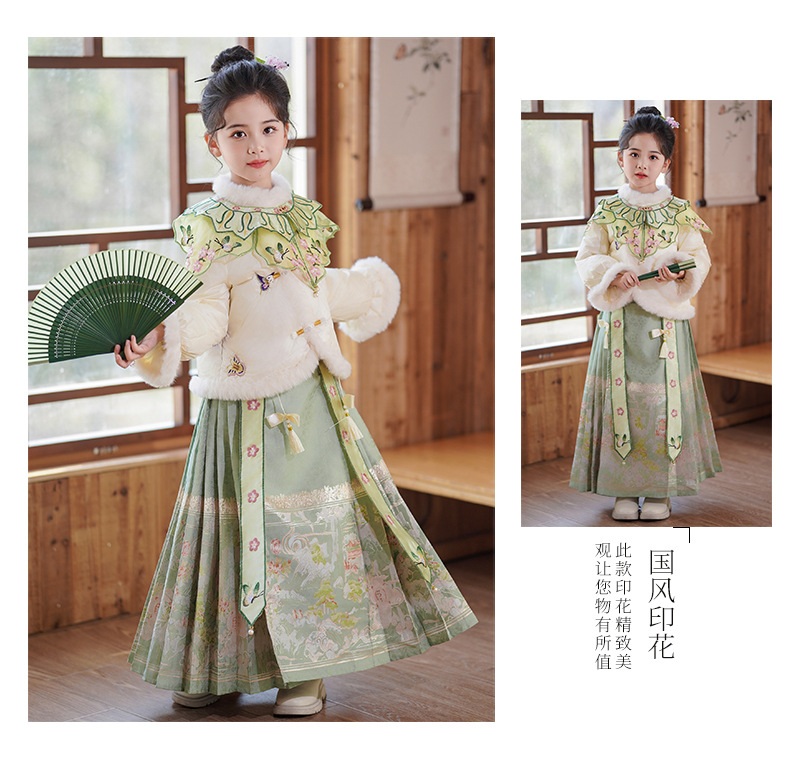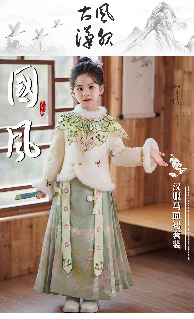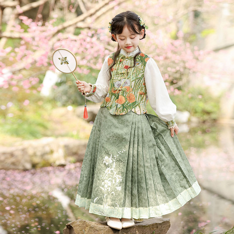 新中式女童马面裙国风汉元素高级感儿童绿色马甲上衣汉服日常可穿