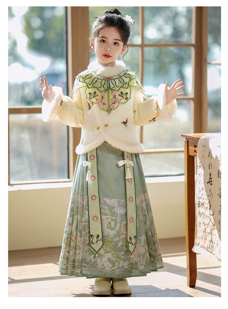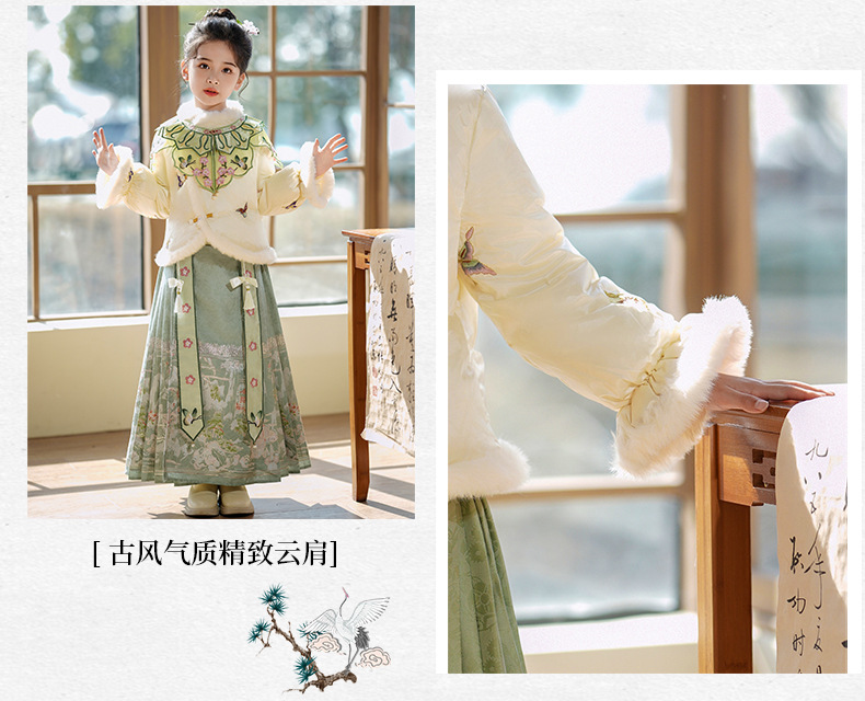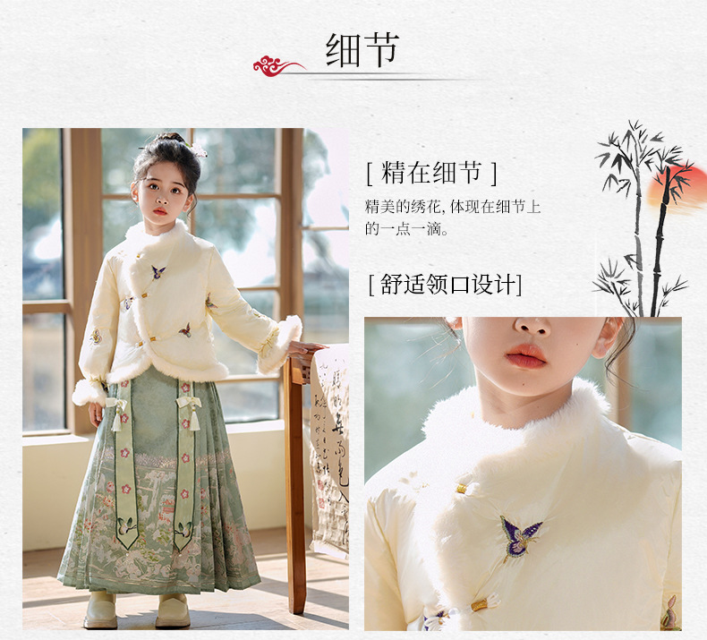 漢服女児馬面裙セット2025年冬新作おしゃれな新年服子供唐装中国風コート