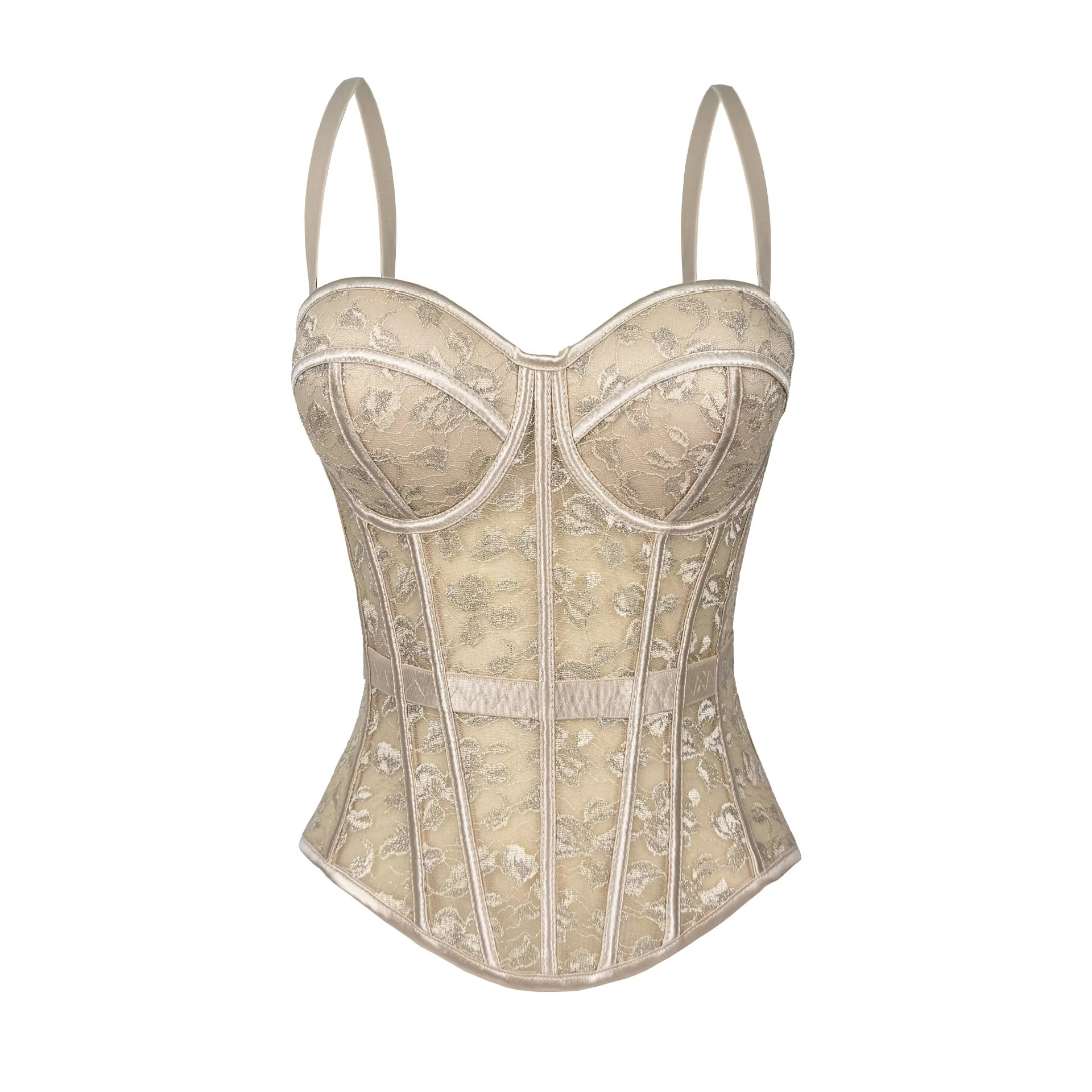 跨境欧美辣妹蕾丝胸衣内搭吊带背心女高级感外穿塑身聚拢鱼骨内衣