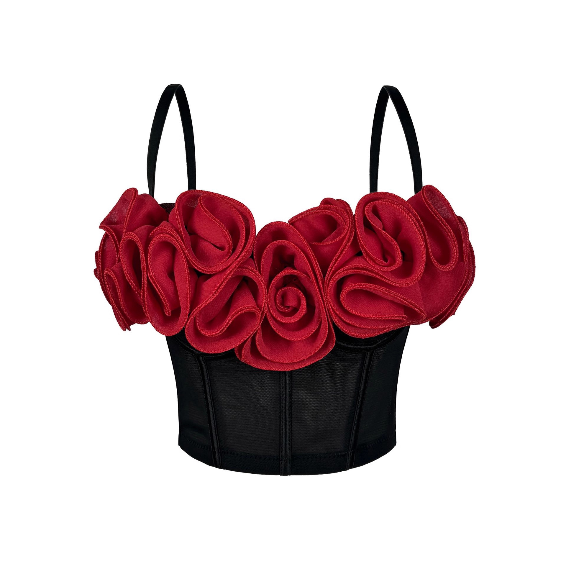クロスボーダーヨーロッパとアメリカの新しい立体フラワーキャミソールトップススリムフィットピュアセクシーフィッシュボーン胸インナー